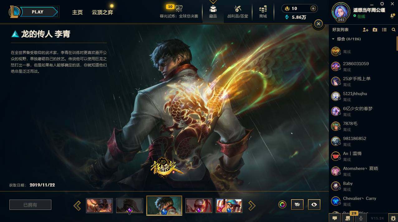 【LMZG172】172英雄/546皮肤/2终极/3神话/109限定/9臻彩/51炫彩/35传说/140史诗/白银/觅心游侠卢锡安头像/SSG霞头像/天龙之子卡莎飞龙乘云/无畏骑士瑟庄妮赤子初心/吕布奉先炫金战神/墨之影武者亚索金墨耀影/冠军之志瑞兹凯旋圣装/魔女阿卡丽虚荣/净雪之月莫甘娜冬虹/霸天异形卡兹克黄金异端/心之钢伊泽瑞尔天纵才华/龙的传人李青/你看见过我的熊猫吗安妮/碧玉之牙卡西奥佩娅/神龙之翼库奇/神龙烈焰金克丝/玉净夜叉凯特琳/虎痴之拳蔚/北辰之威内瑟斯/天龙之子斯莫德/海克斯科
