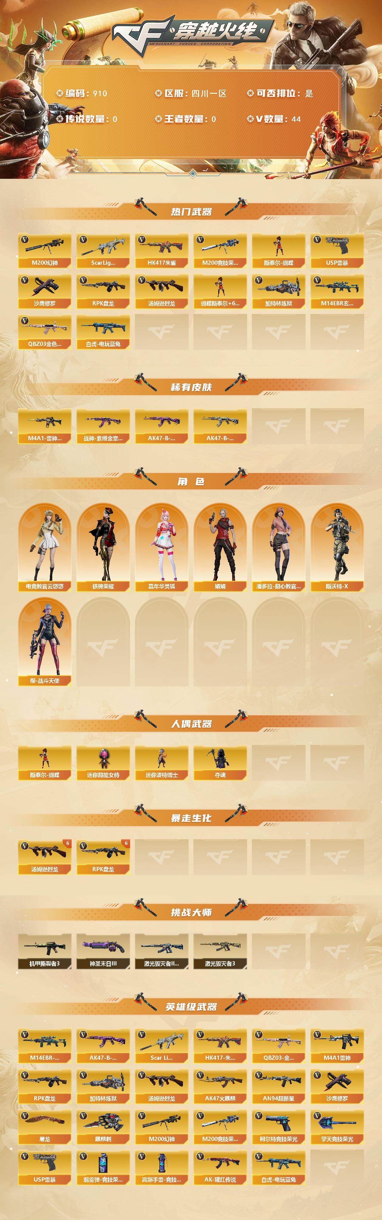 四川一区-44V-0王者-0炫金【热门武器】:QBZ03-金色蔷薇,M14E