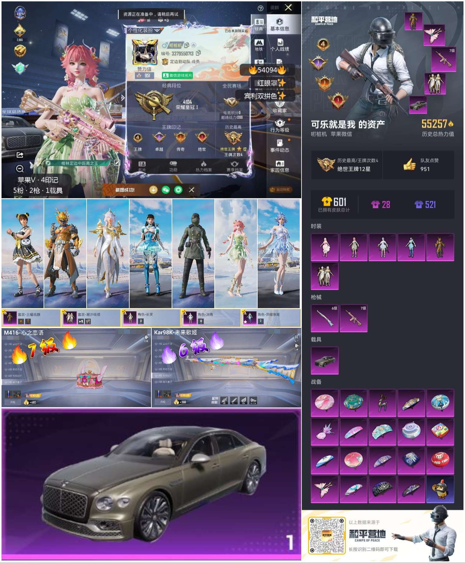 hs54094 苹果v-4王牌印记-6粉装-2特效枪-1载具-55257热力值-122套装-162