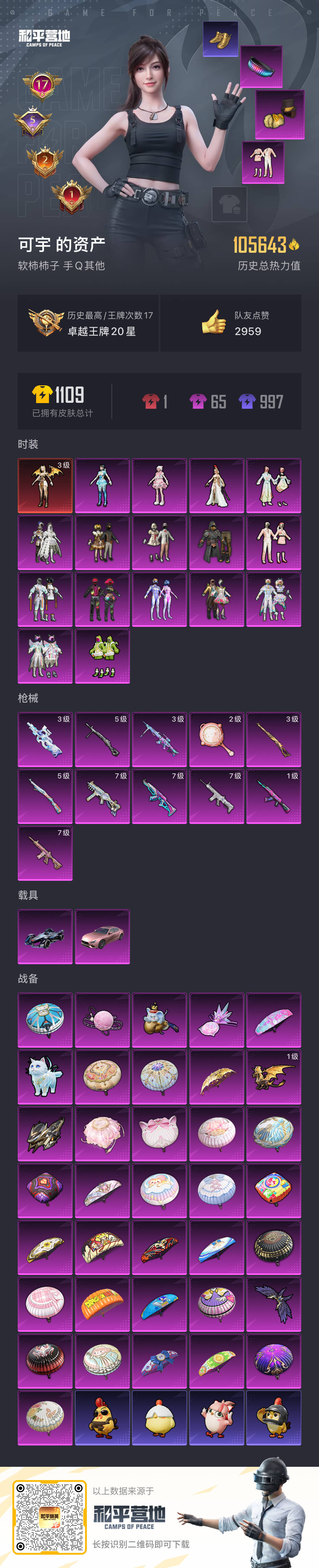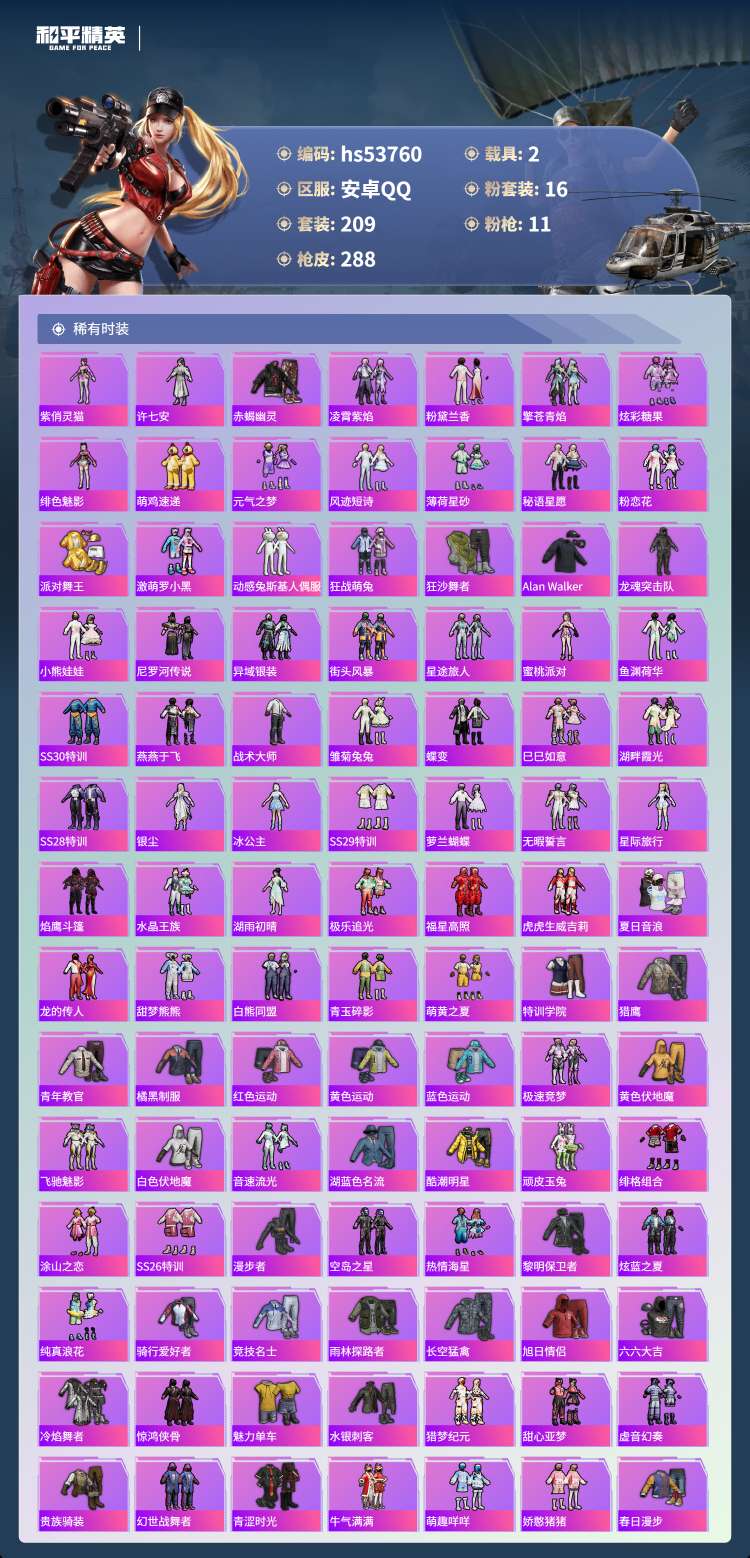 hs53760 安卓手Q-17王牌印记-1红装-16粉装-11特效枪-2载具-105643热力值-2