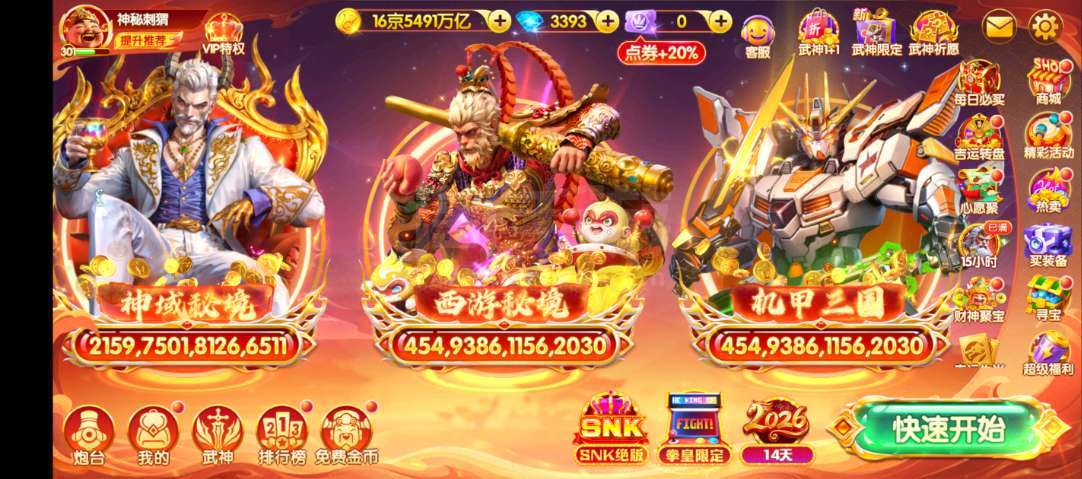 华为系统高爆号,启动资金16.5京,武神三姐妹万炮,天神全觉醒,双月卡在手。装备、炮台、天神、武神都很齐,资源多,直接上号就能玩,秒改密。