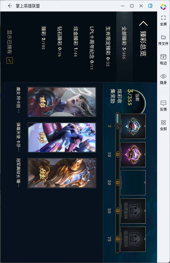 【臻彩皮肤】:冠军典狱长锤石凯旋圣装,弹幕天使卡莎炽天使勇敢,魔女阿卡丽虚荣
