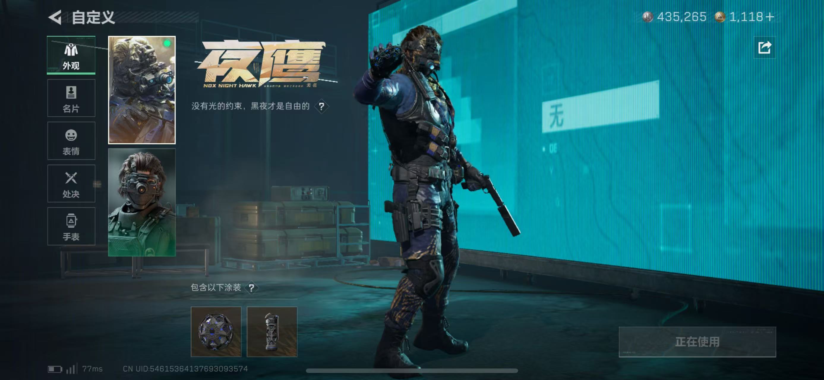 总资产157.36M,哈夫币 435.27K,战场等级:43 上等兵,行动等级:60 钻石,角色皮肤