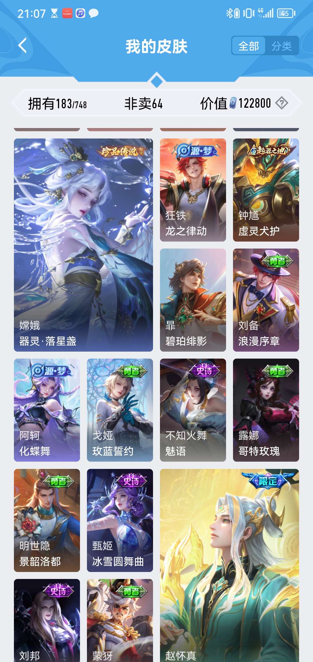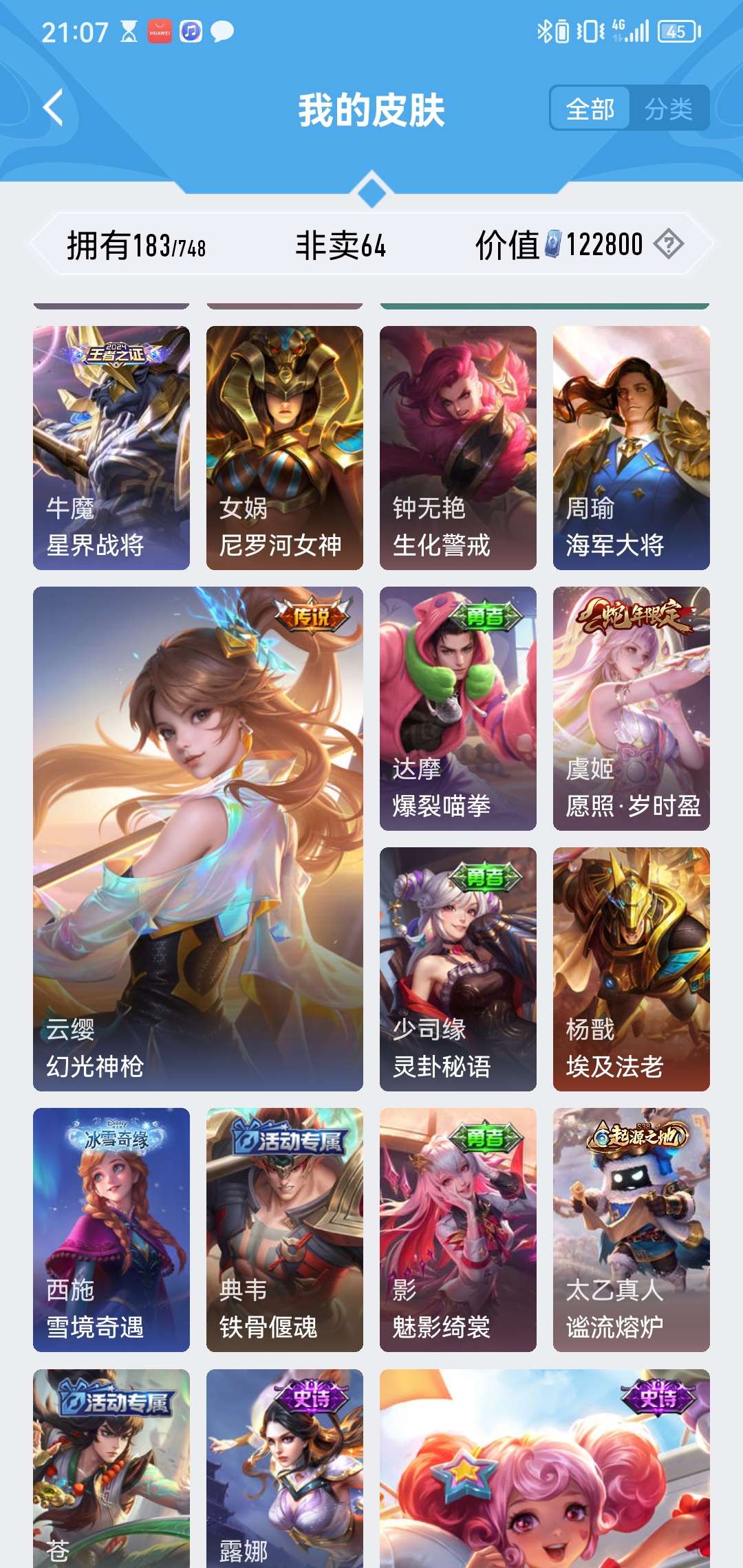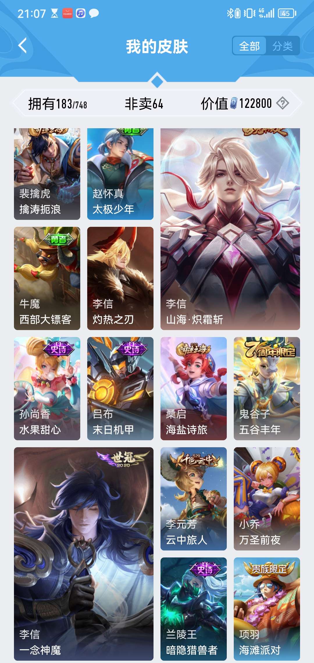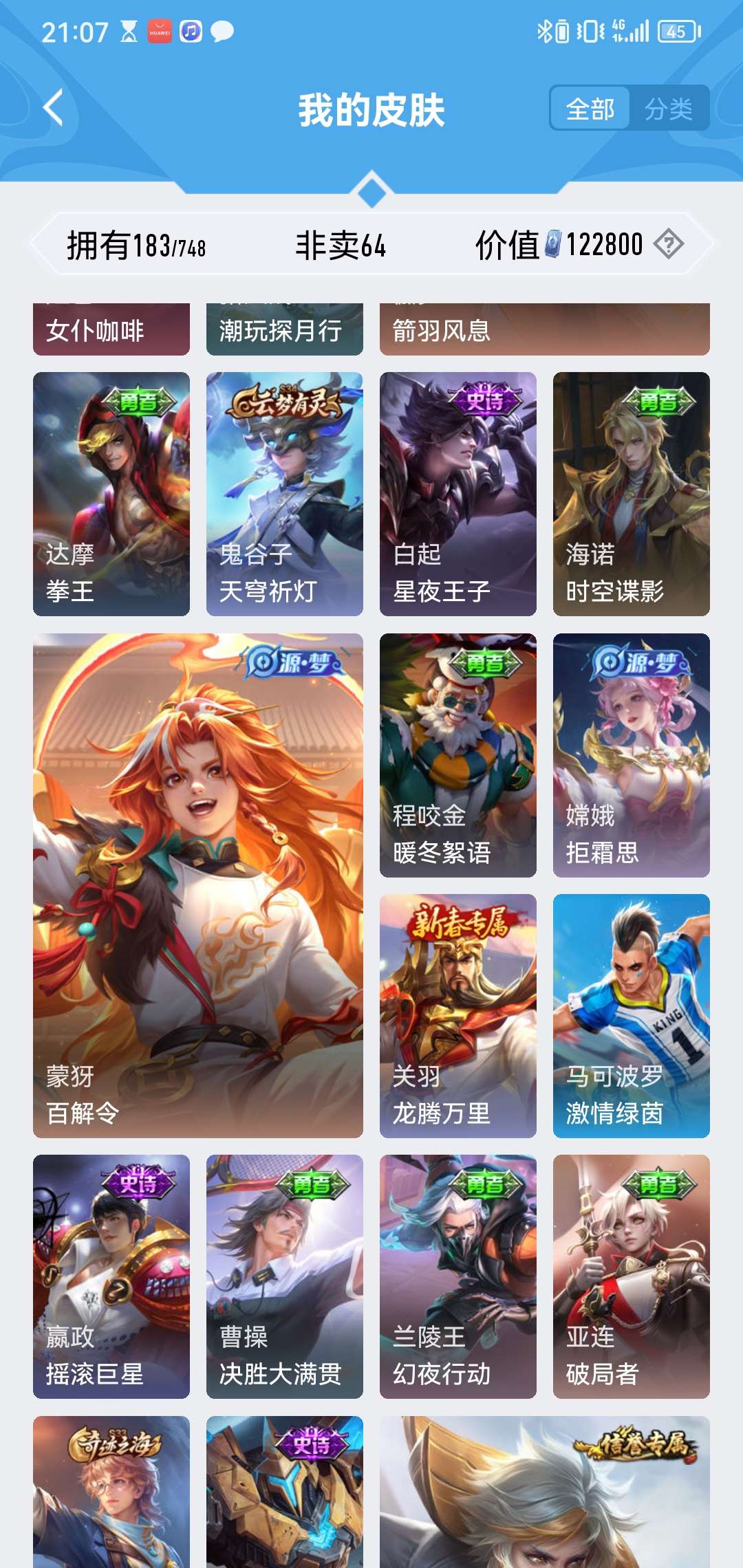 安卓QQ-7传说-183皮肤-125英雄-永恒钻石-李信全皮急出手 可
