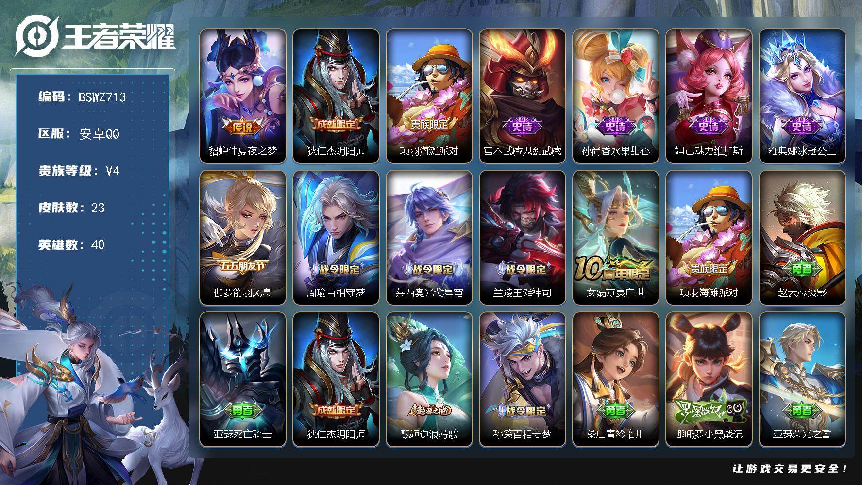 【其他皮肤】:项羽海滩派对,赵云忍炎影,亚瑟死亡骑士,狄仁杰阴阳师,甄姬逆浪荇歌,孙策百相守梦,桑