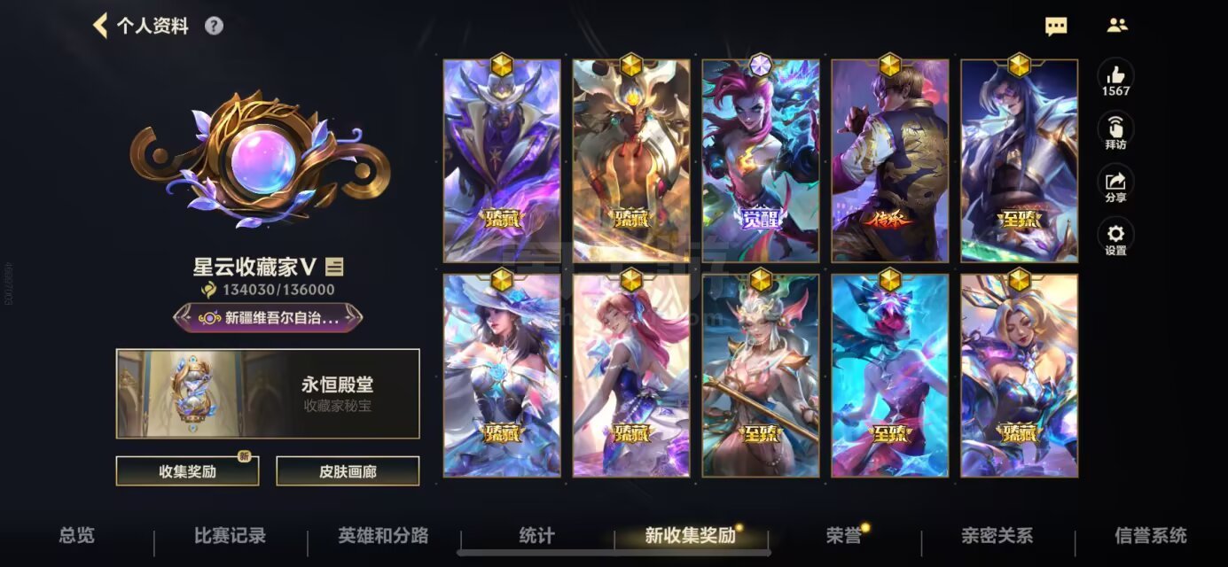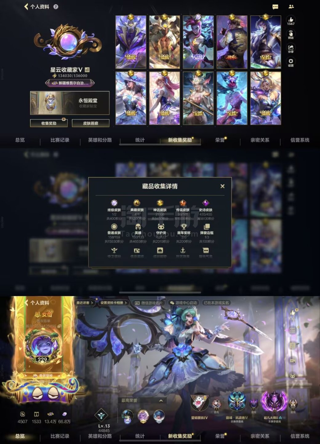 苹果V,可转区!金名号!13.4万收藏积分!727皮肤!1终极,满典藏,27神话!白龙回城,2顶级拖尾!青花瓷播报!新水晶皮肤全套!各种动态头像框,皮肤宝箱一大堆!夏日套,新皮肤拉满!有连体游戏
