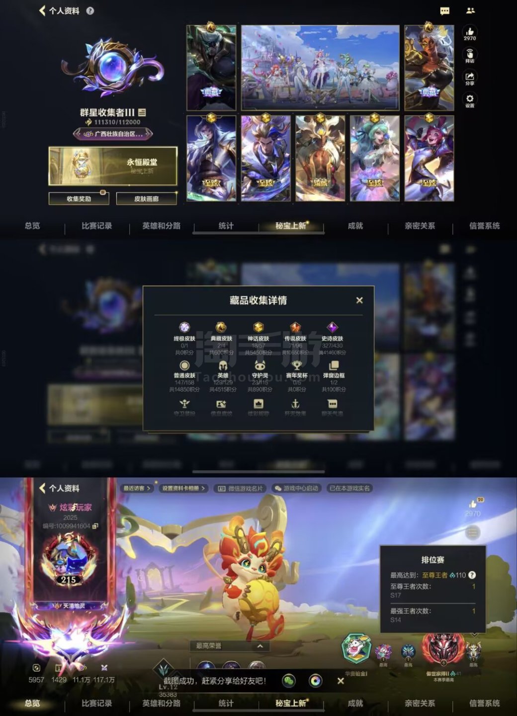 苹果V,可转安卓!粉名号!11万多收藏积分!565皮肤,2典藏,18神话!黑龙回城!水晶播报!4顶级拖尾!水晶3套,情人节套,各种套装皮!