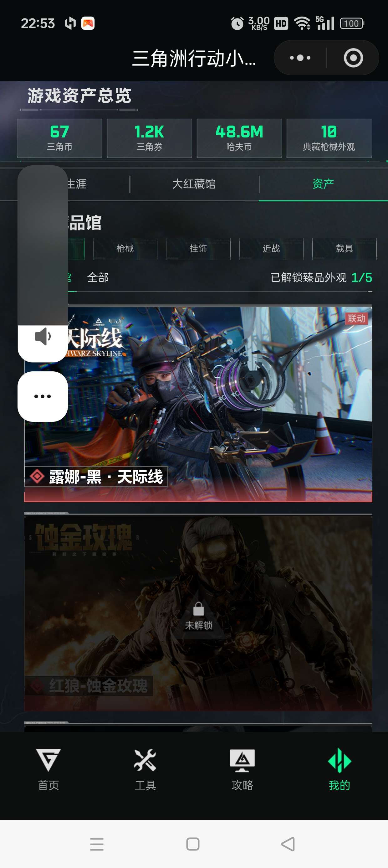 58咖啡豆,1非洲之星,70发aw,s1到现在一个小红没卖过,红狼皮肤差最后一次