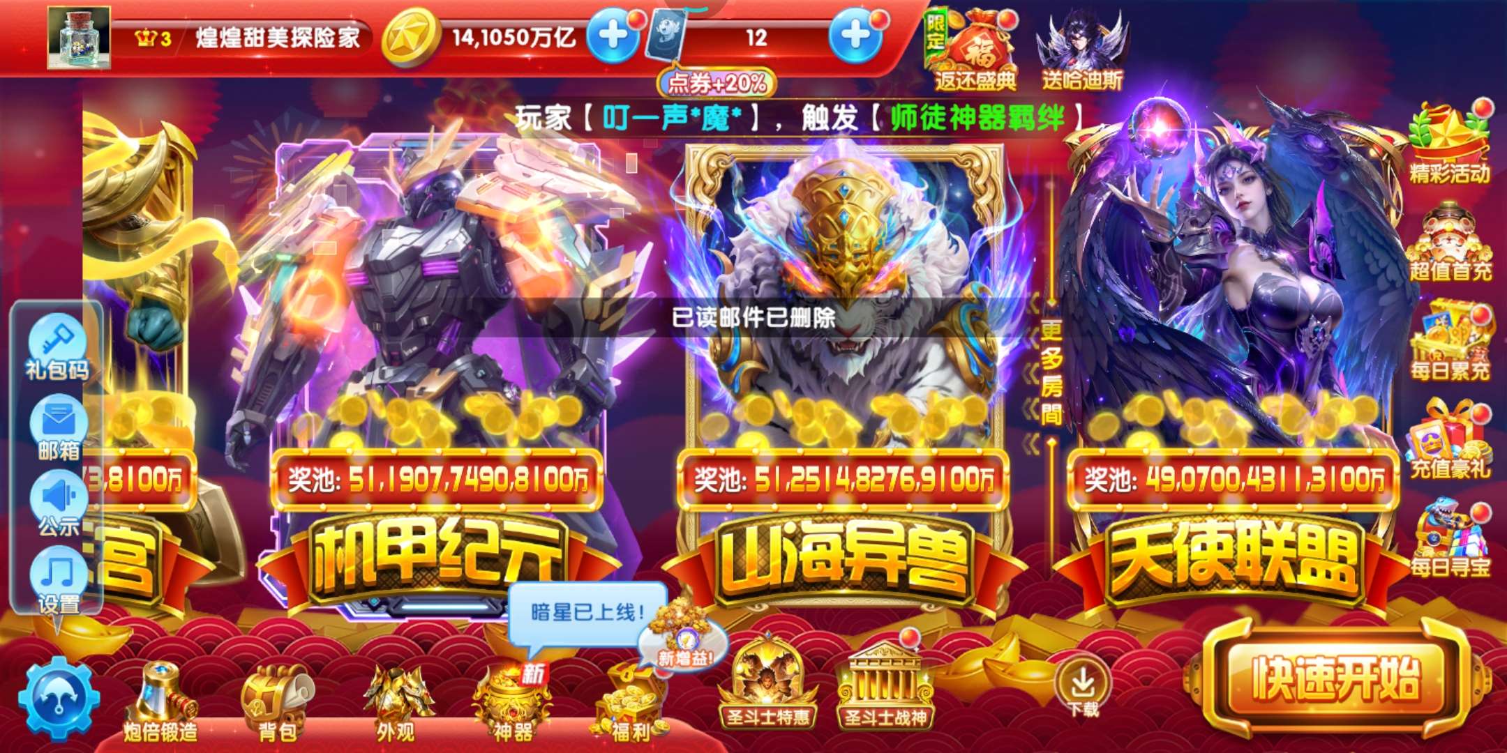 超能两天,刀手出战,捕鱼大作战小米版金币140000万亿,实炮倍10000万炮,巅峰3.5倍,带号出