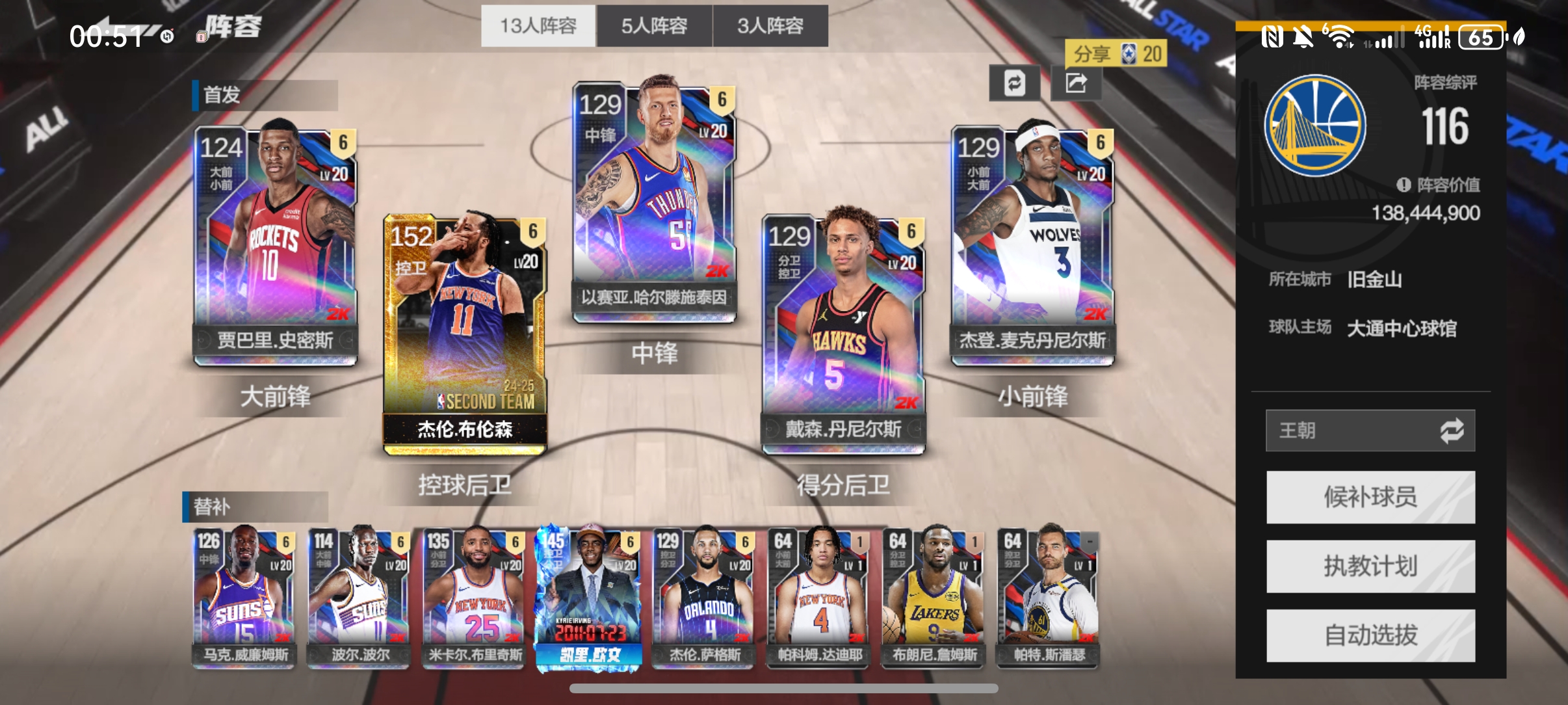时刻欧文+布伦森带队,1.5亿合同费阵容,三模式超巨街头百星