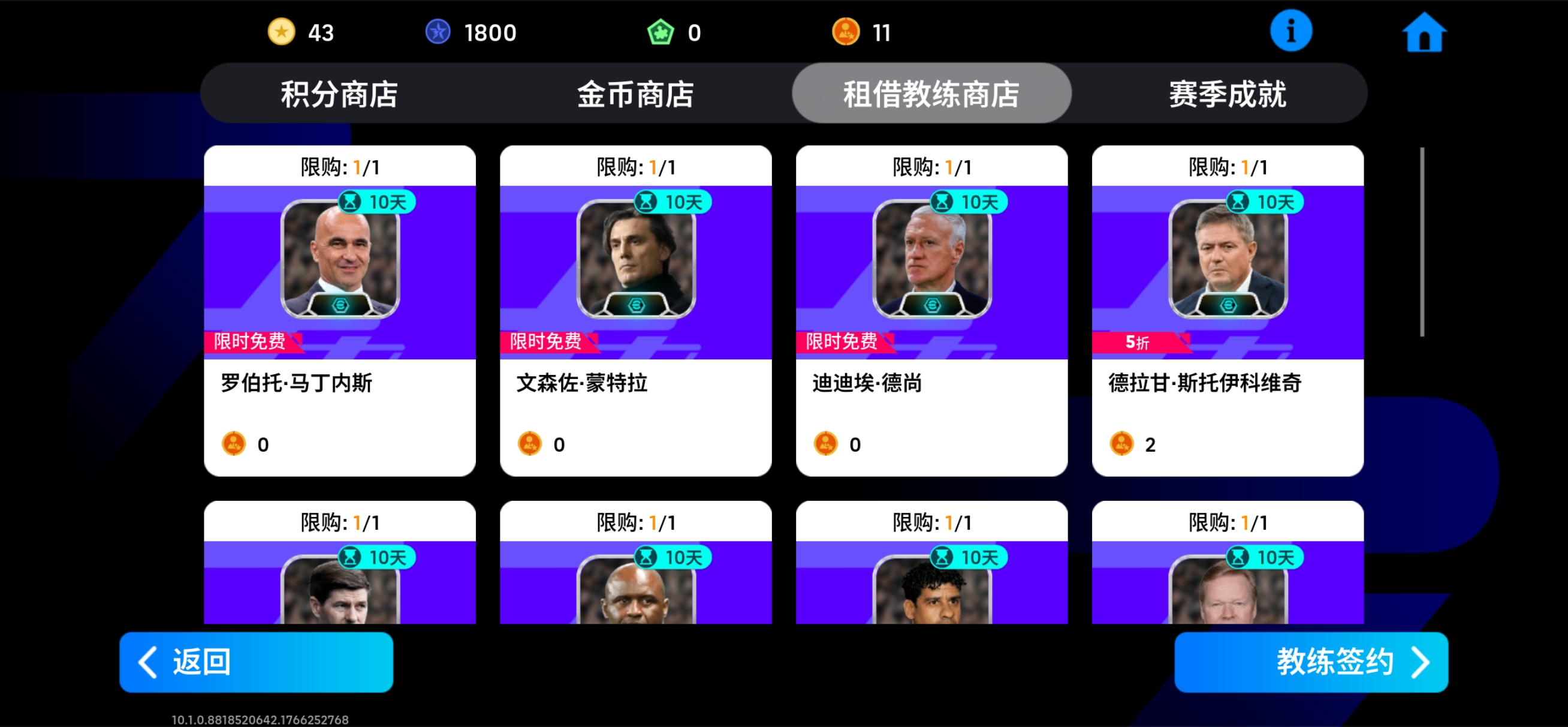 多球员,周一购买,毕业阵容,教练租借随便租,能租三赛季,超多心怡不支持议价,马上拿博格坎普,无卡,来