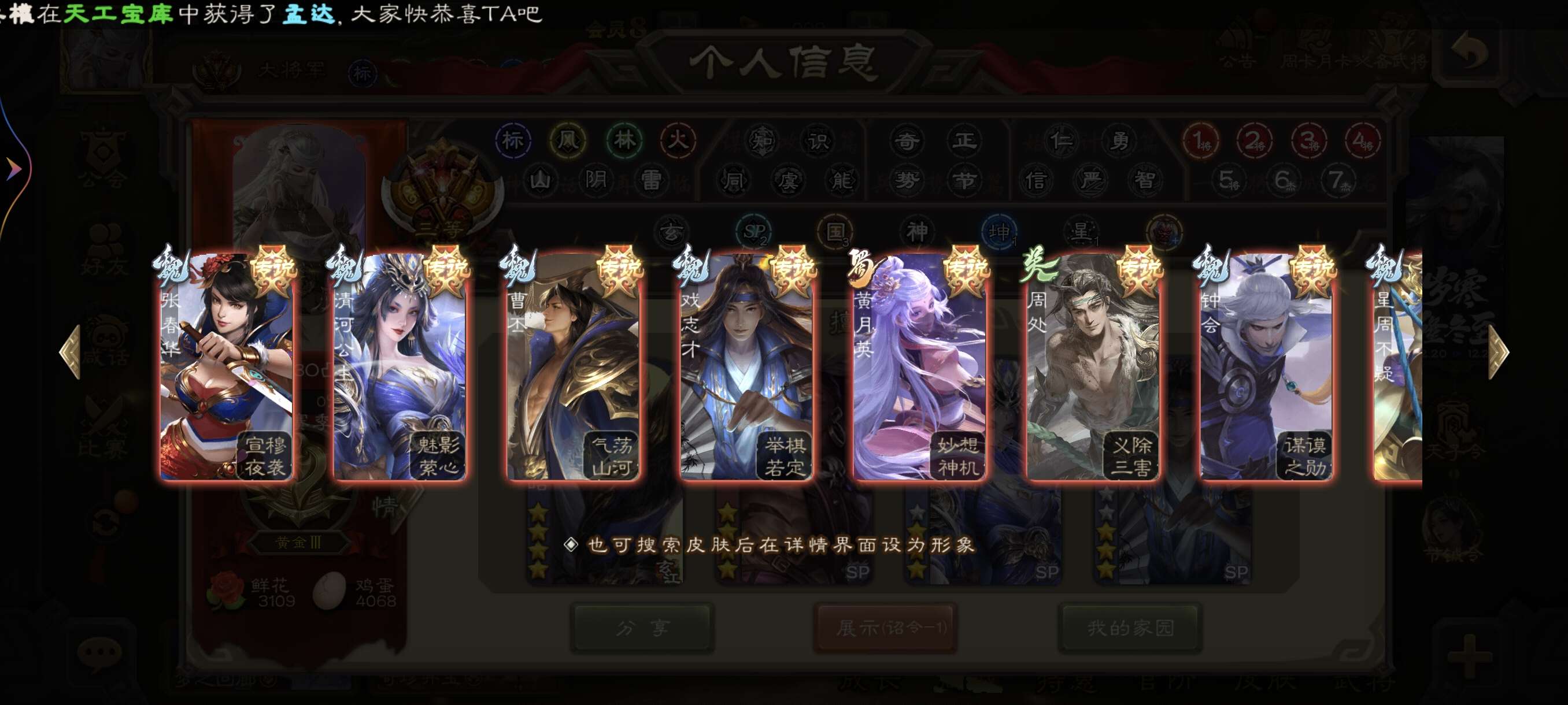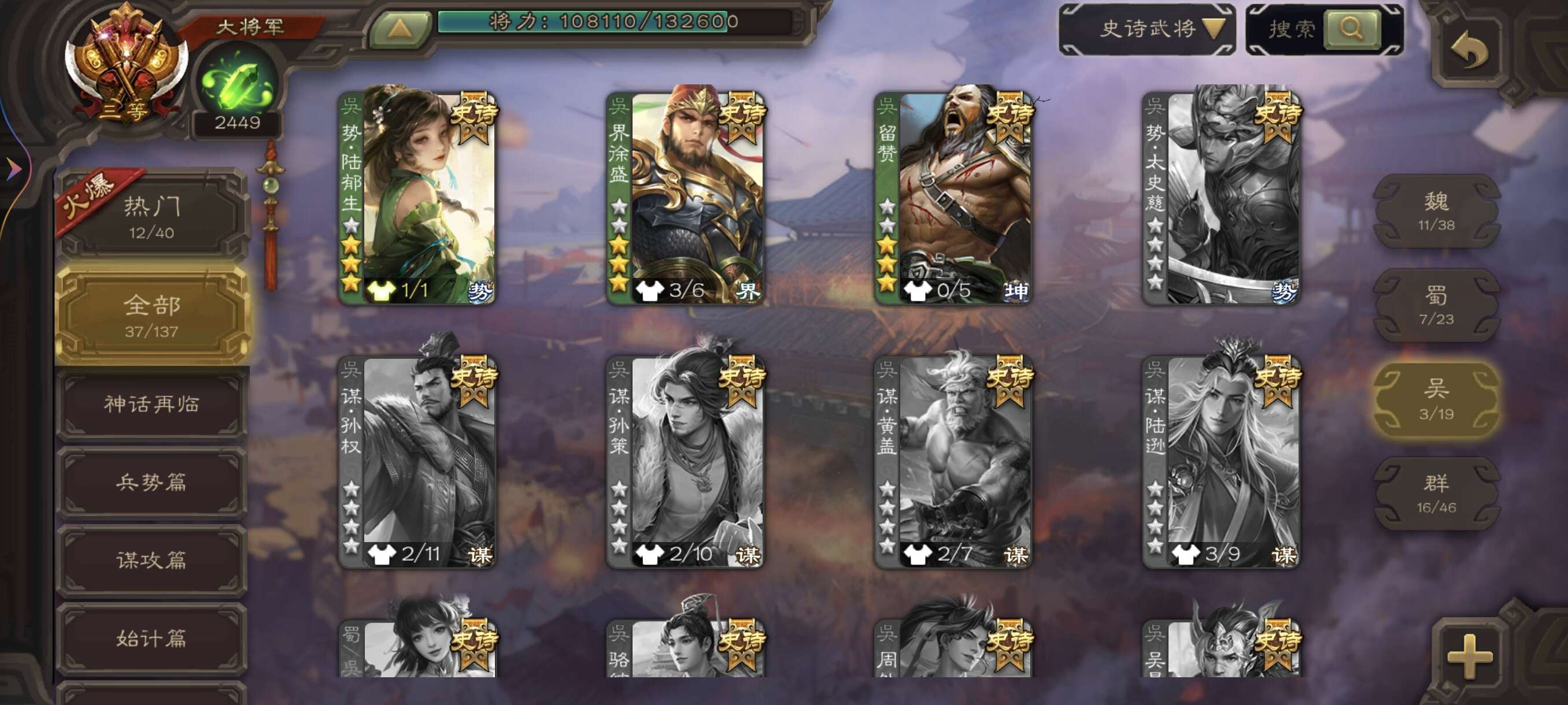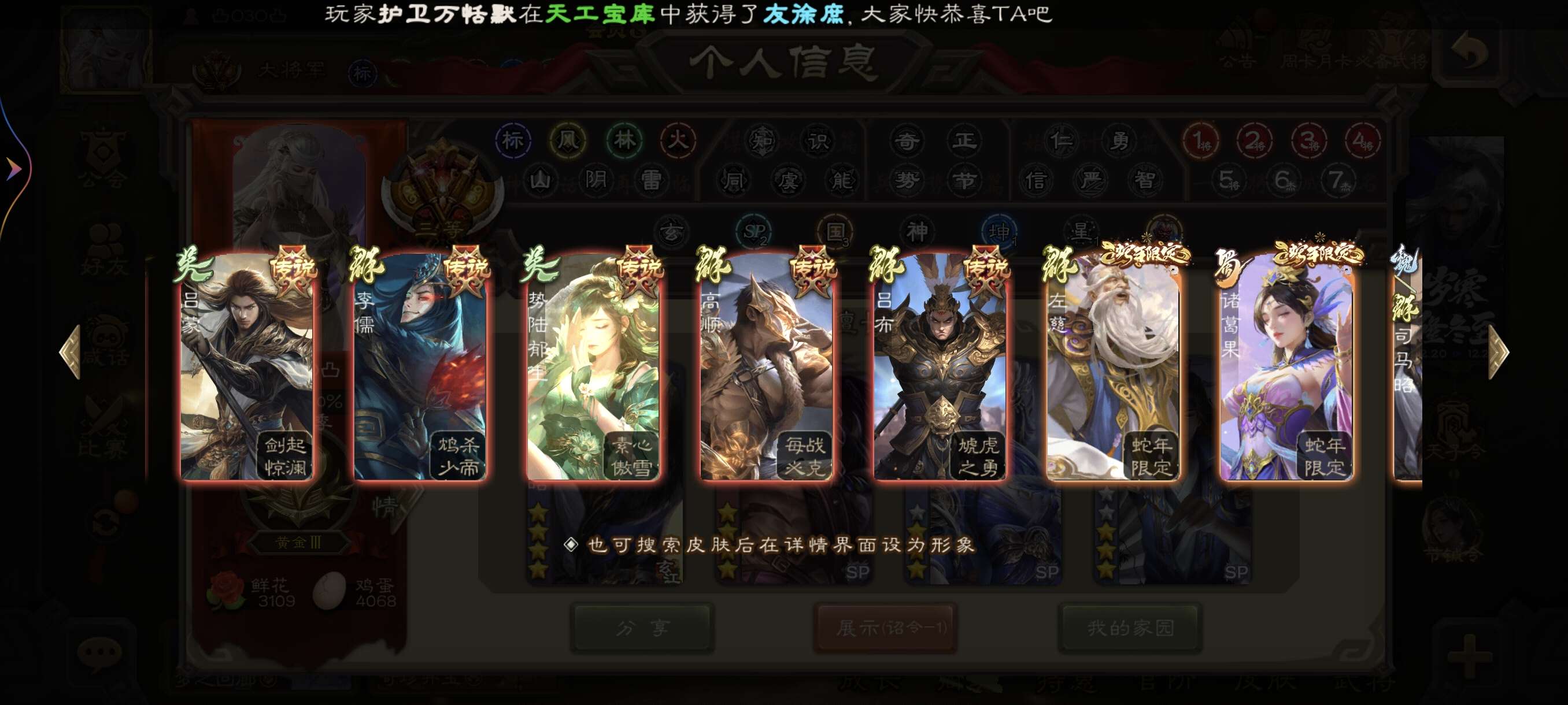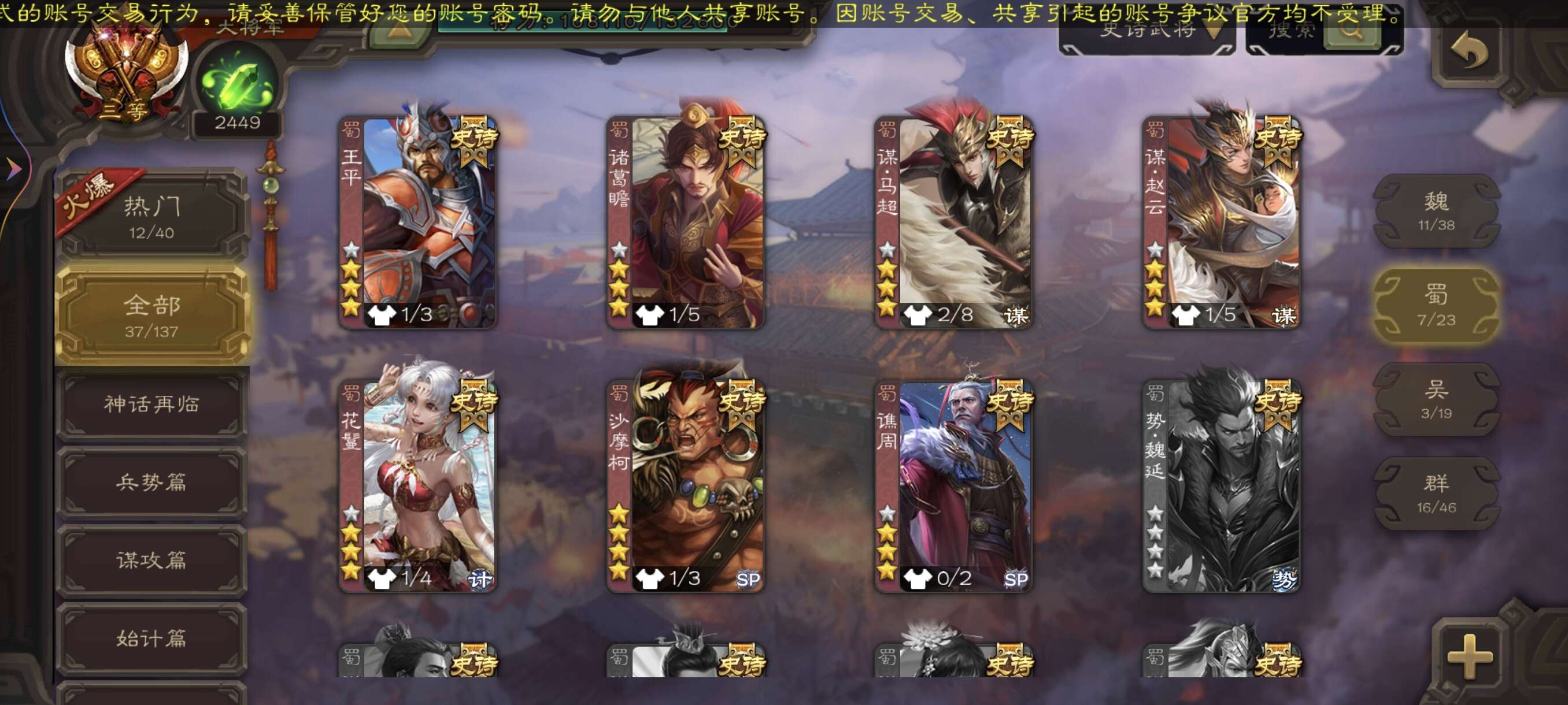 三期节约领将,大宝,留赞,谋吕布,谋公孙瓒,水果忍者,界左慈还有其他史诗和好精品,差1k换南华老仙