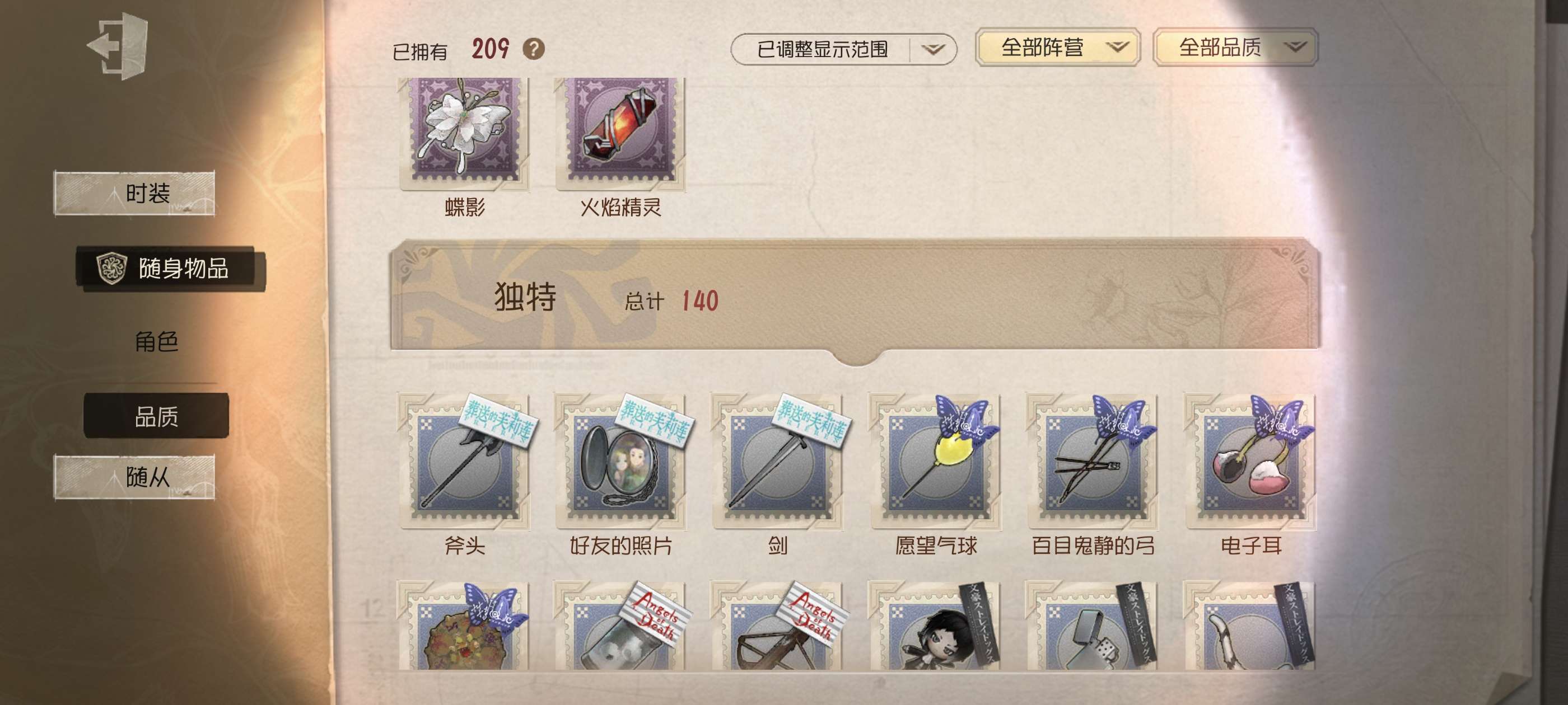 随身物品: