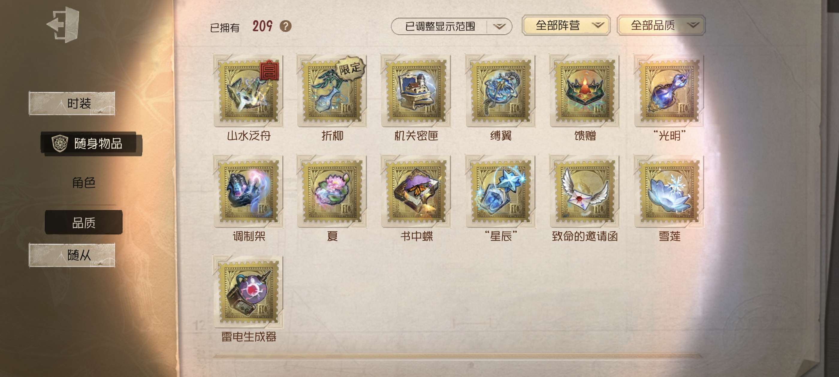随身物品数量: