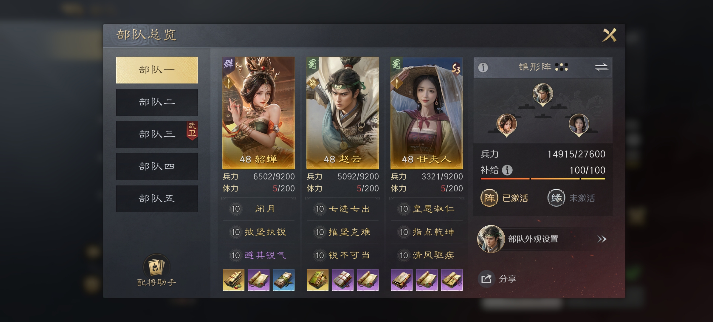 赵甘貂,战法