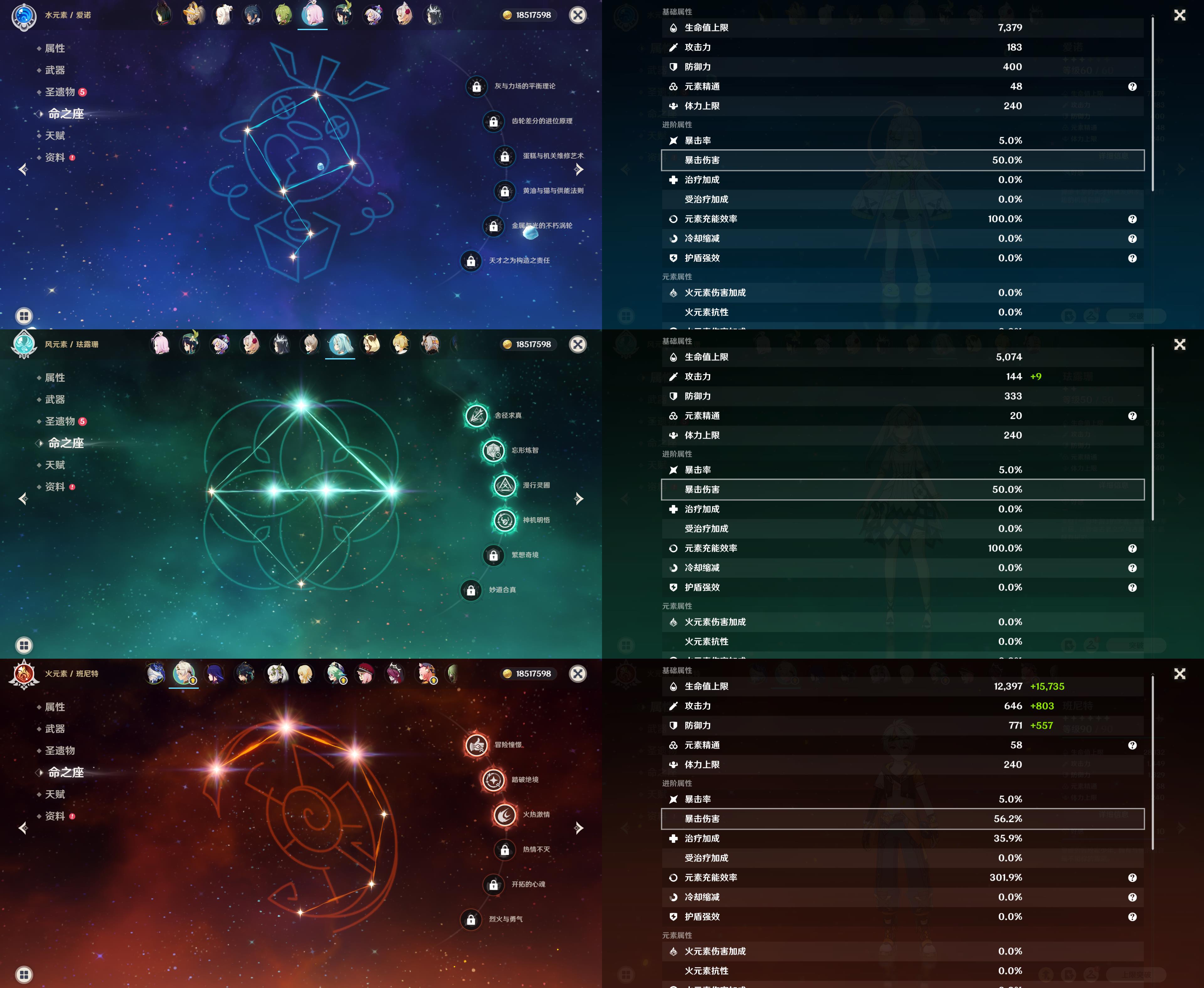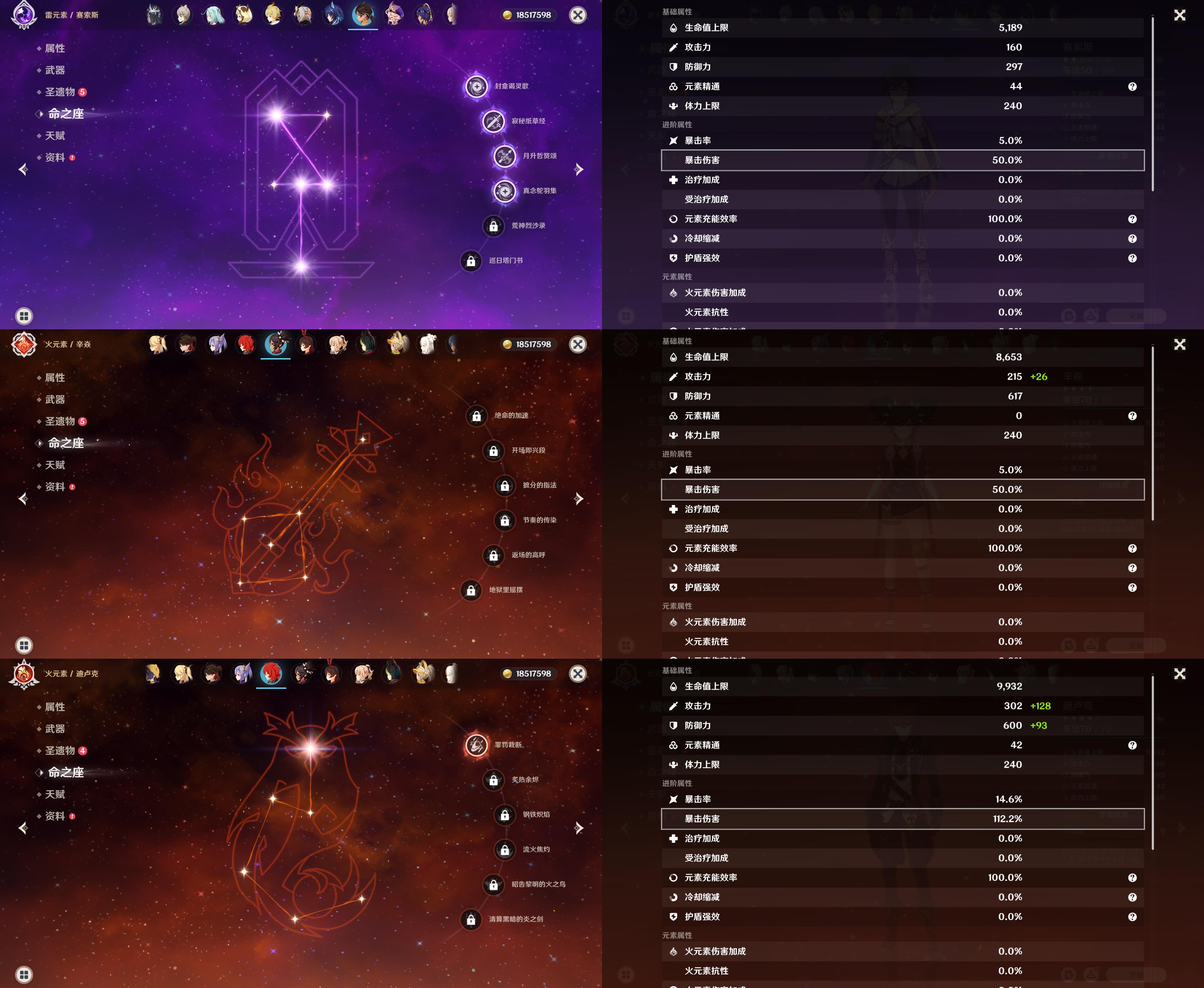 60级/33黄/女主/12个五星角色