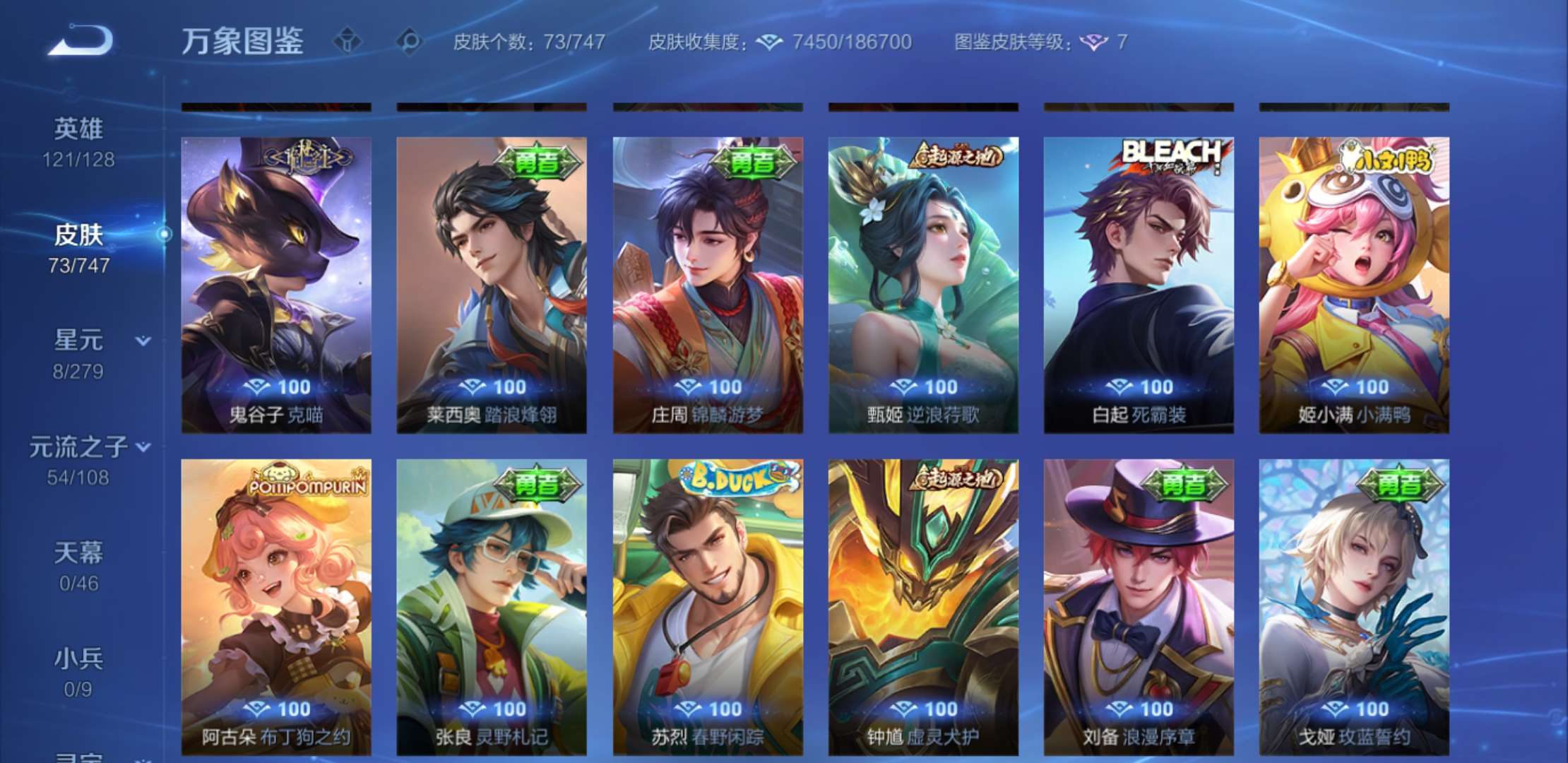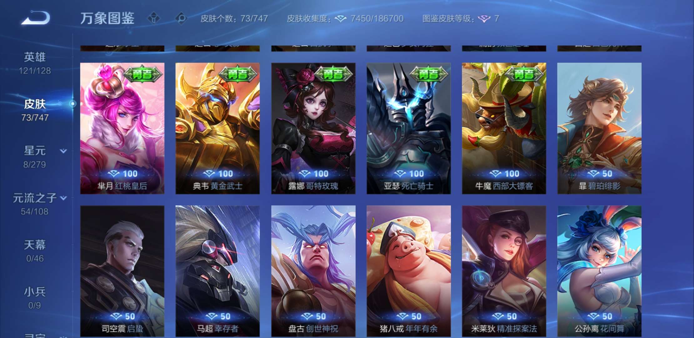 三个王者水晶,改名卡,201英雄,73皮肤,30级成品号,得过赛点级冠军,一个传说皮肤,十个史诗皮肤