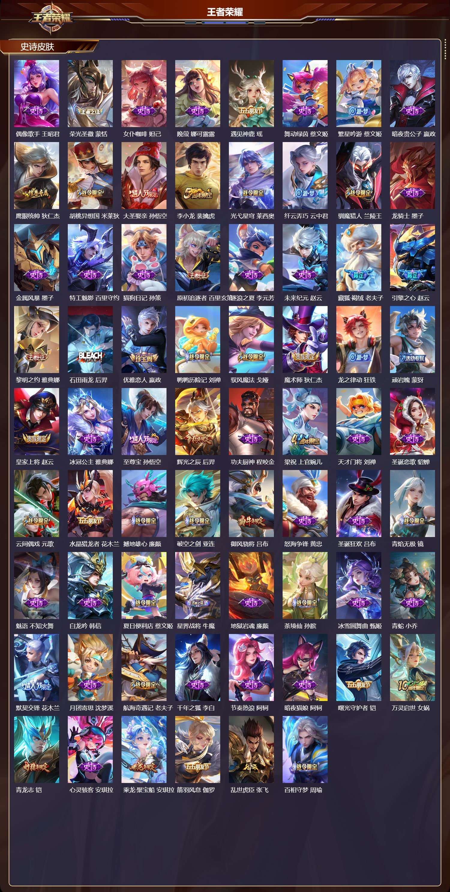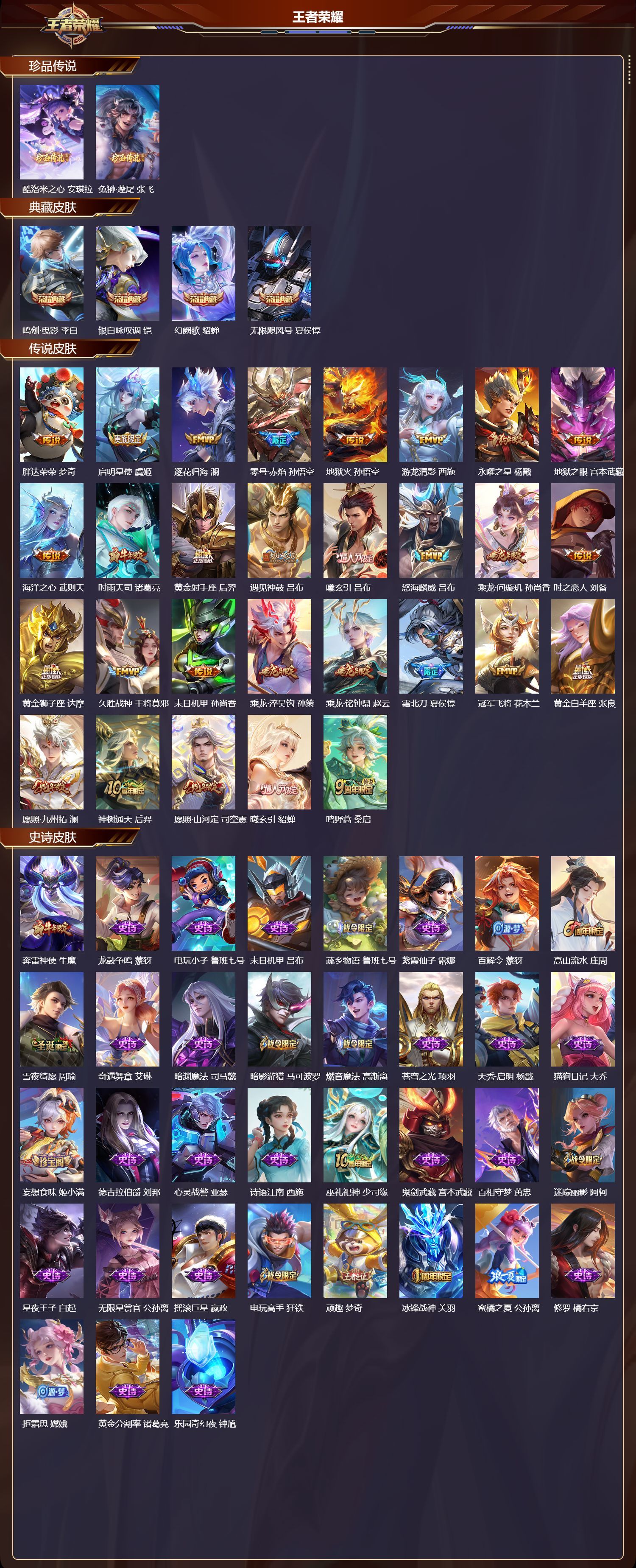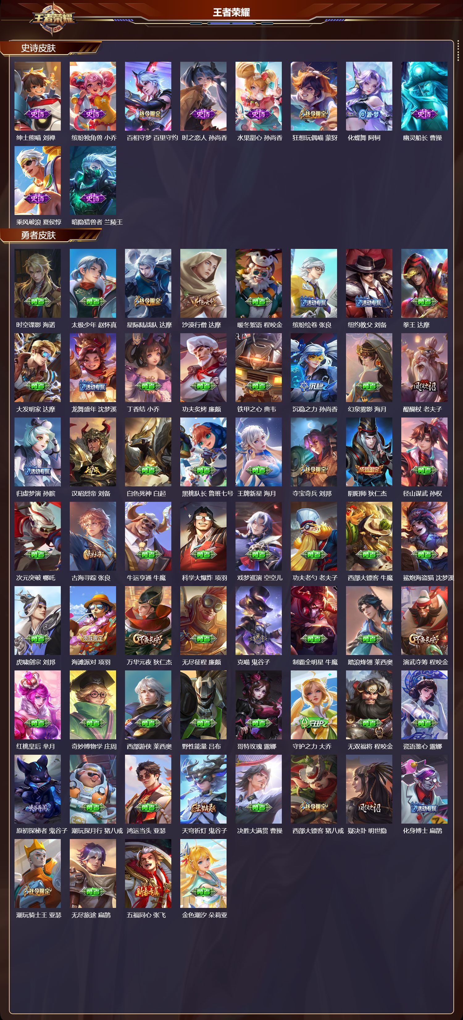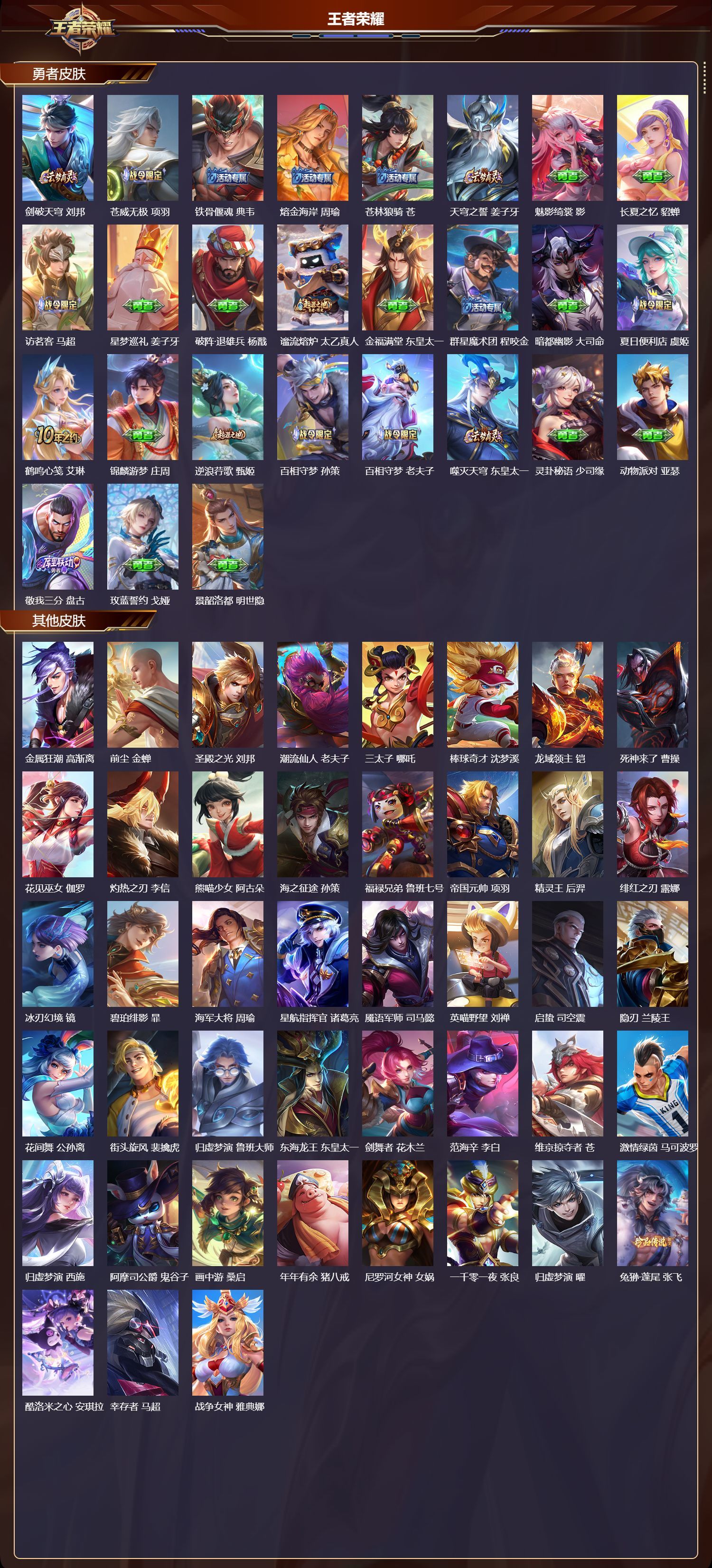 安卓微/荣耀王者/360皮肤/127英雄/4典藏/0珍品无双/0无双/2珍品传说/29传说/115