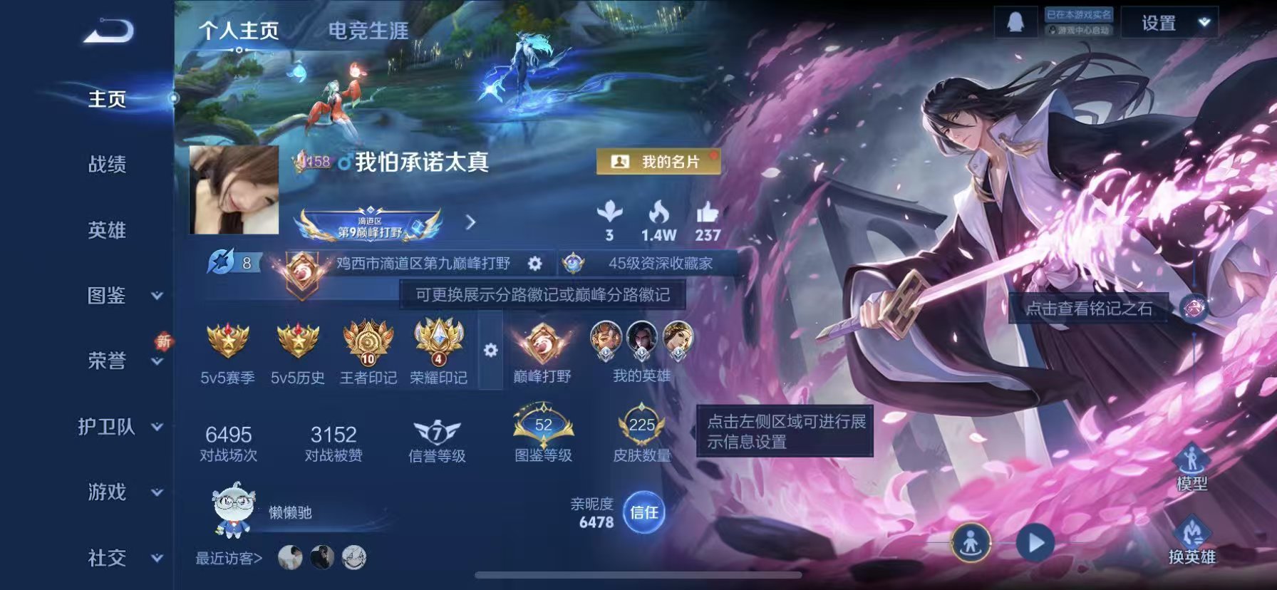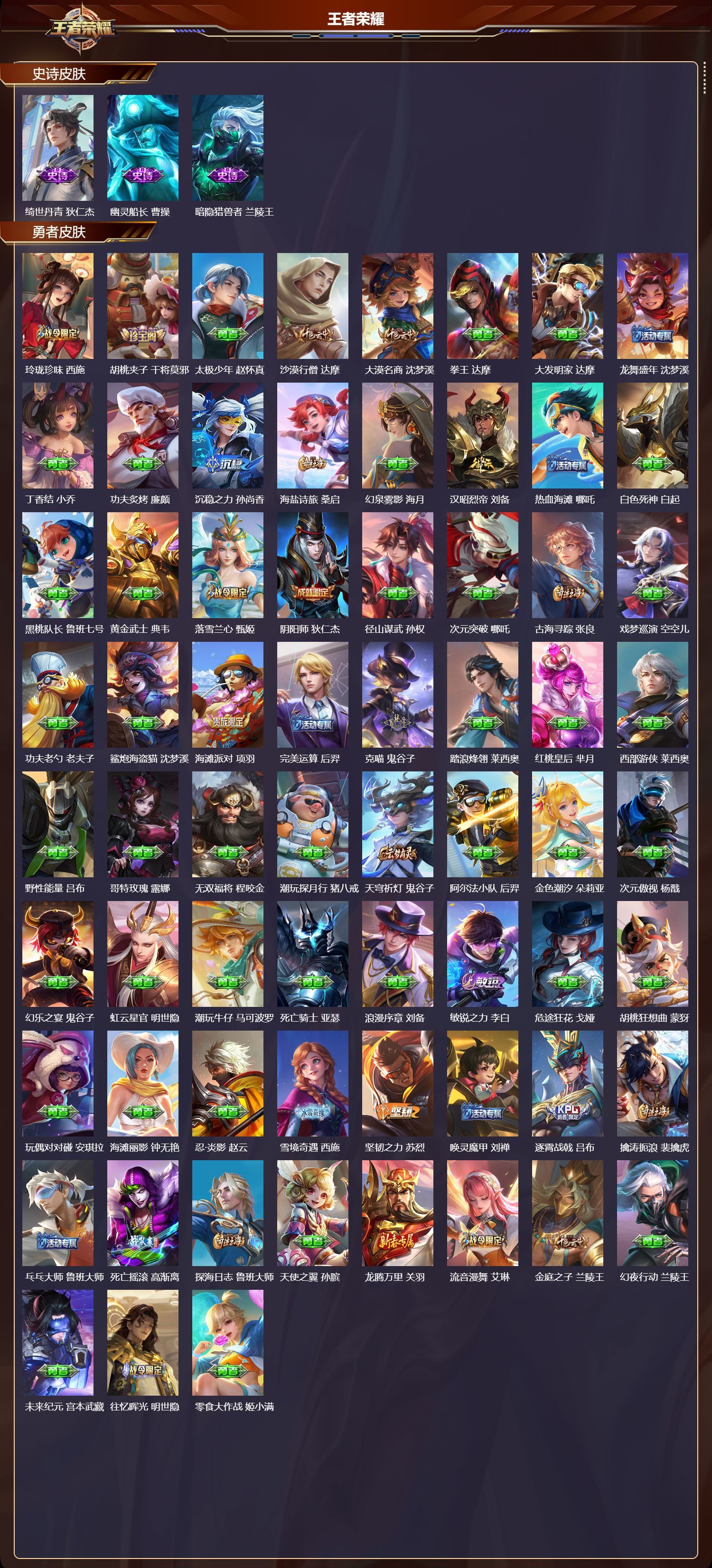 苹果QQ/荣耀王者/225皮肤/124英雄/1典藏/0珍品无双/0无双/2珍品传说/5传说/65史诗