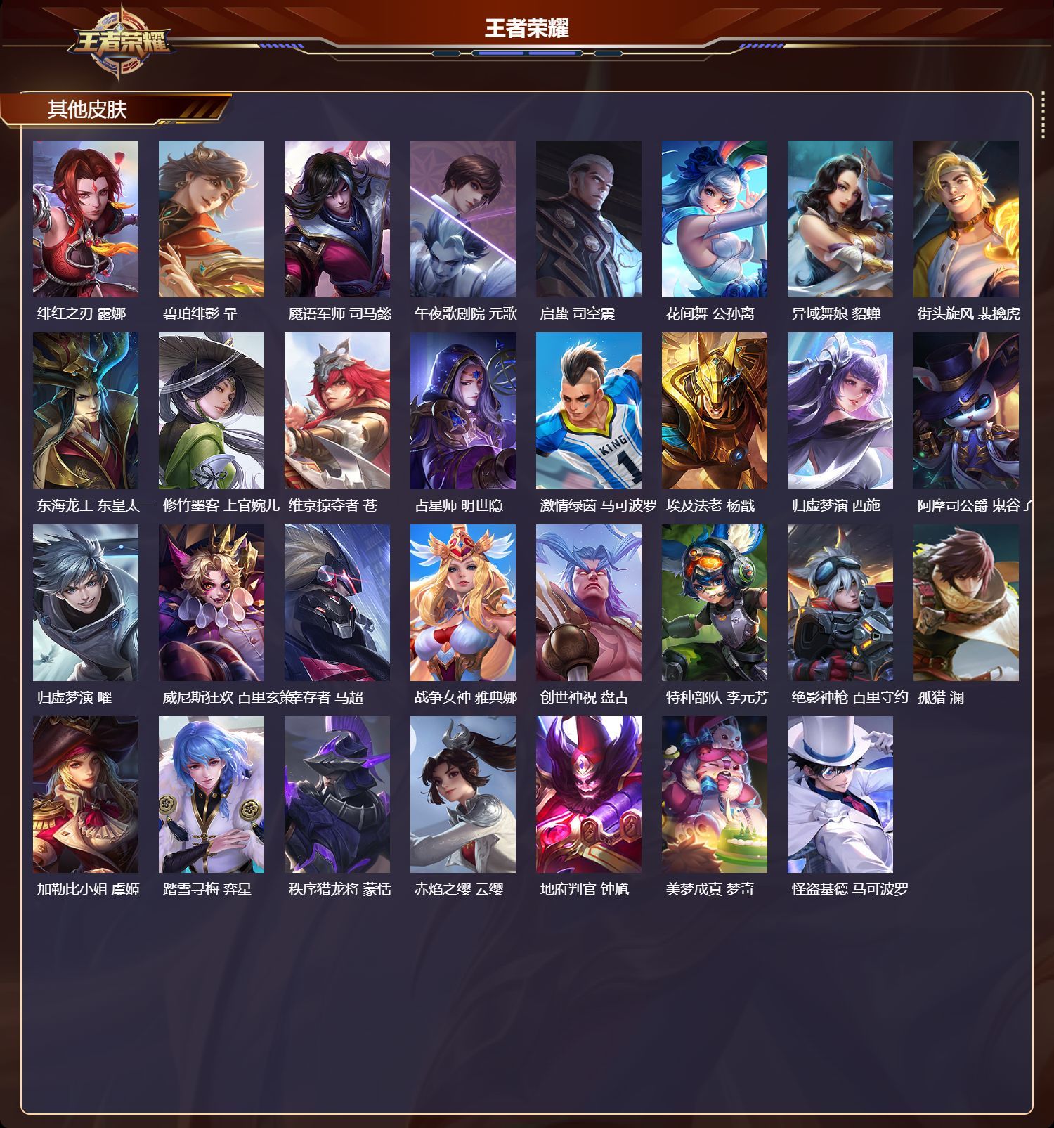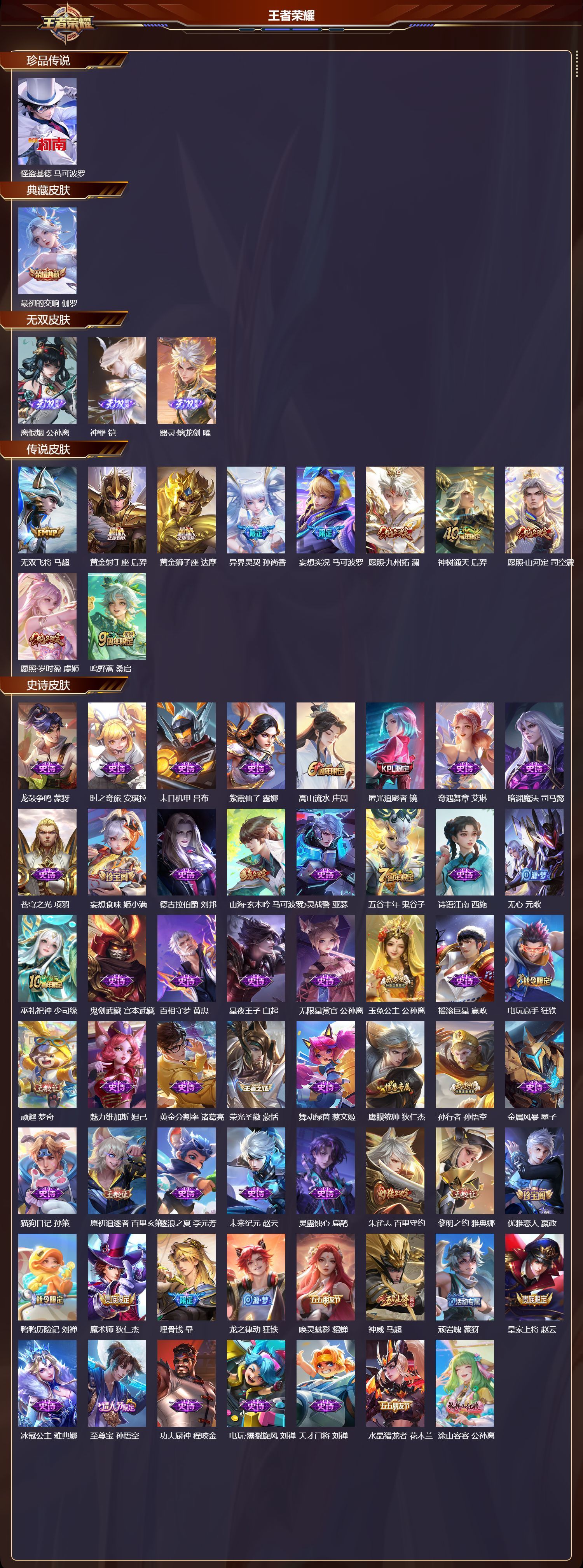 安卓QQ/荣耀王者/241皮肤/127英雄/1典藏/0珍品无双/3无双/1珍品传说/10传说/77史