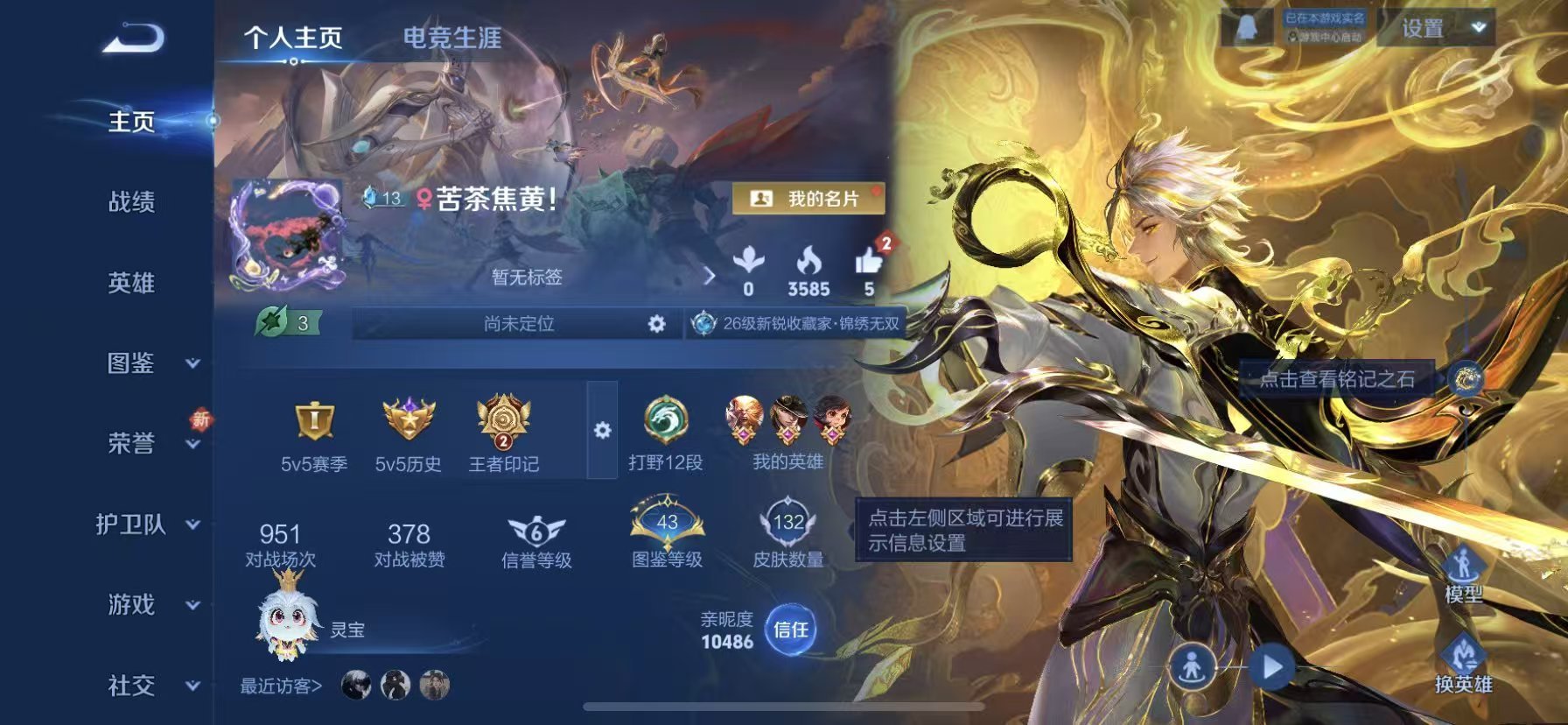苹果QQ/荣耀黄金/132皮肤/111英雄/1典藏/0珍品无双/4无双/4珍品传说/22传说/42史