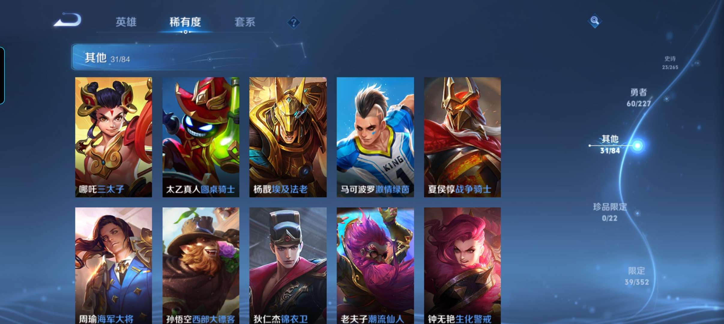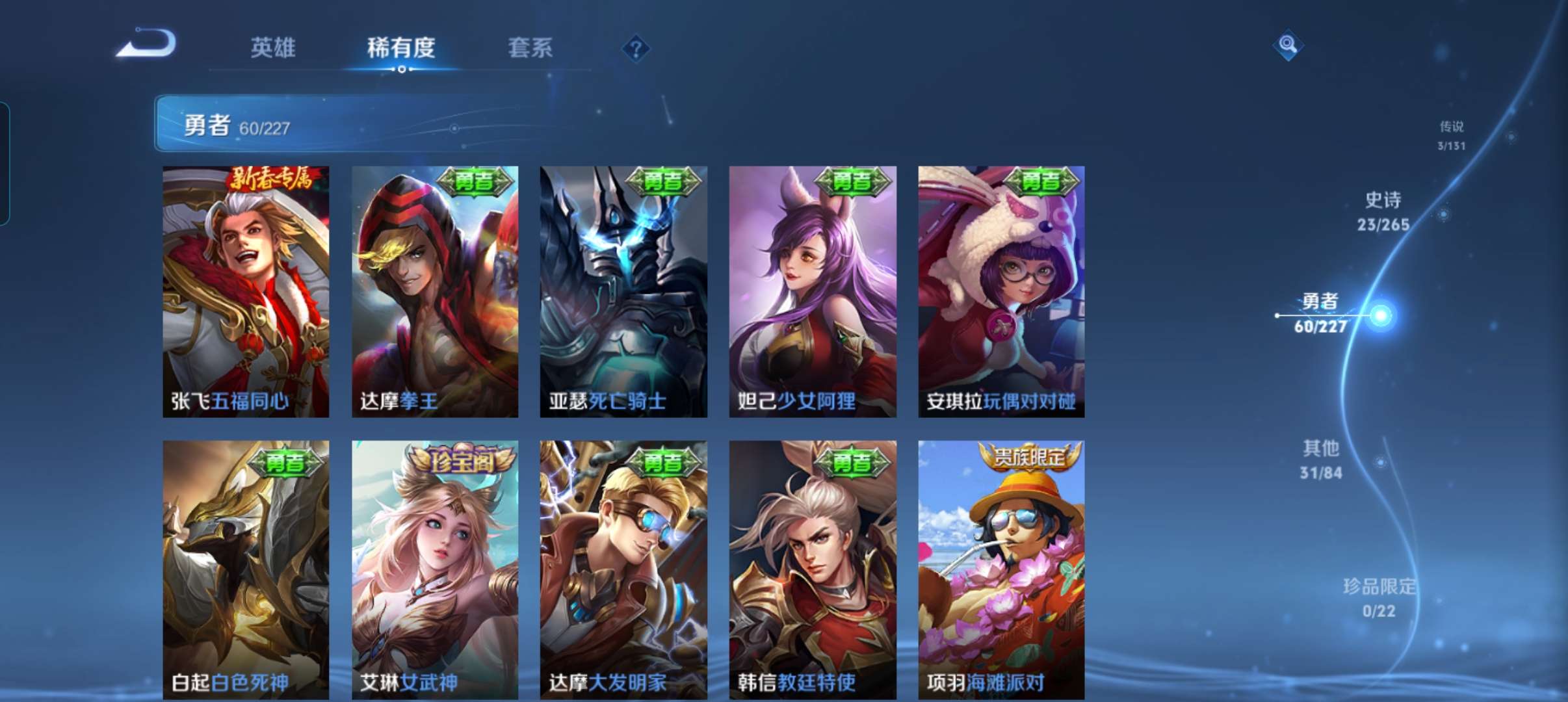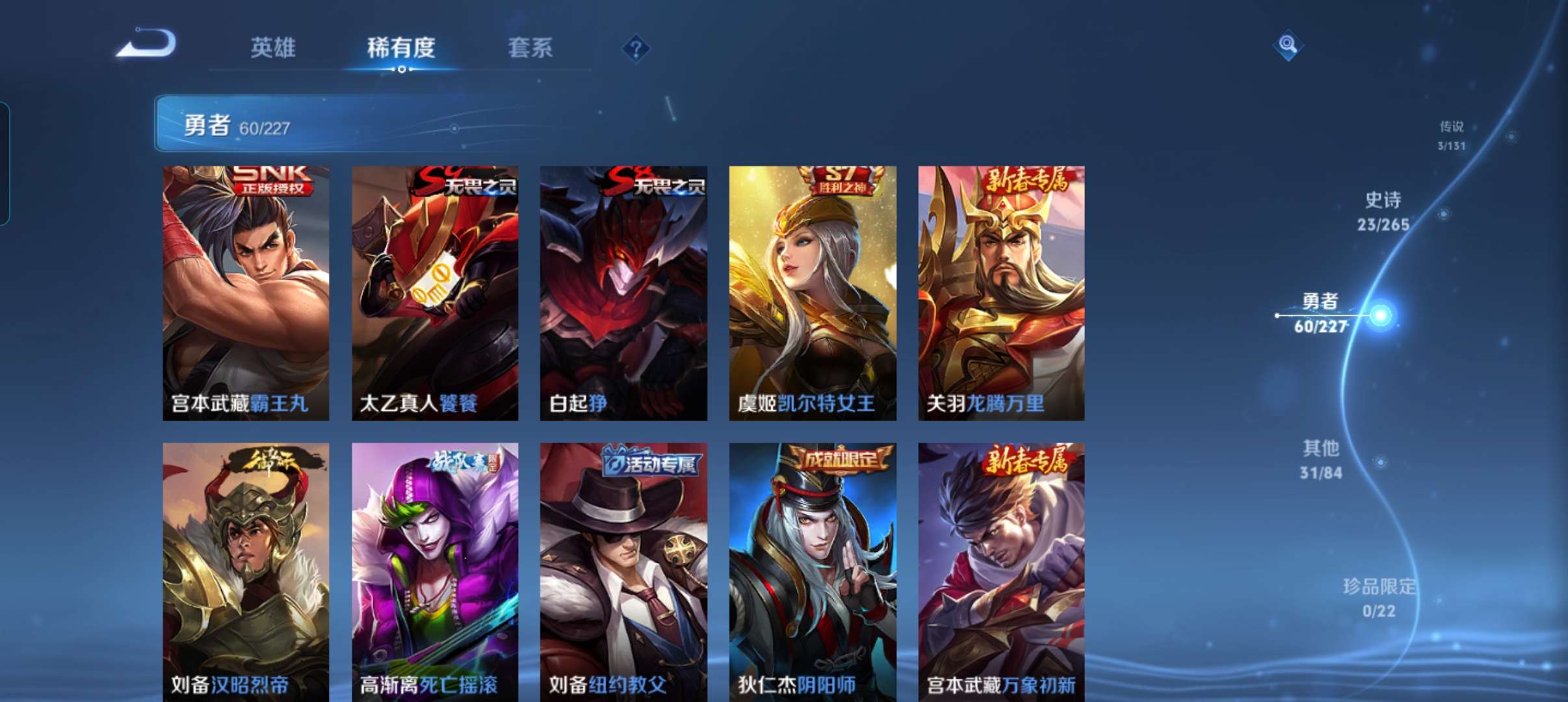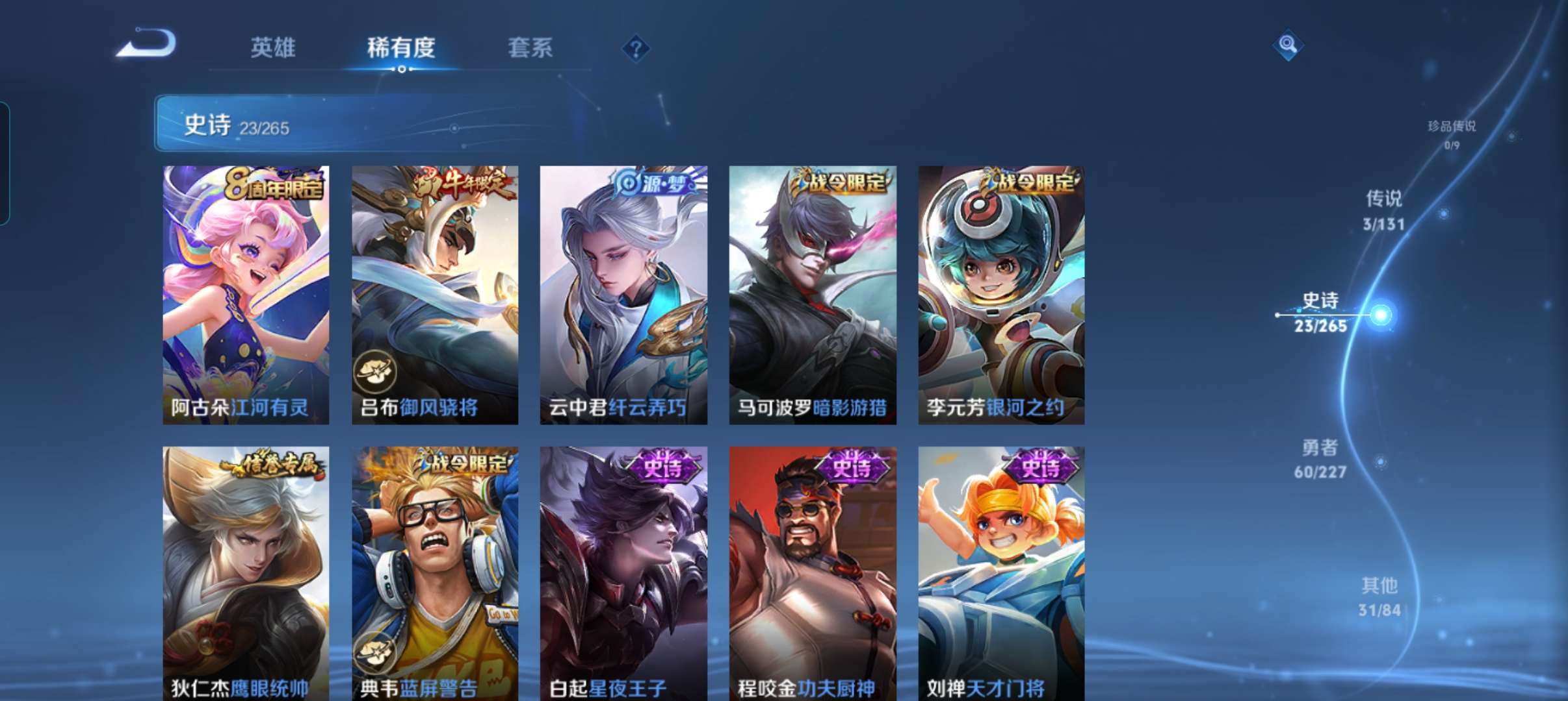 7传说-94皮肤-113英雄-永恒钻石-吕布天魔等3传说。不议价