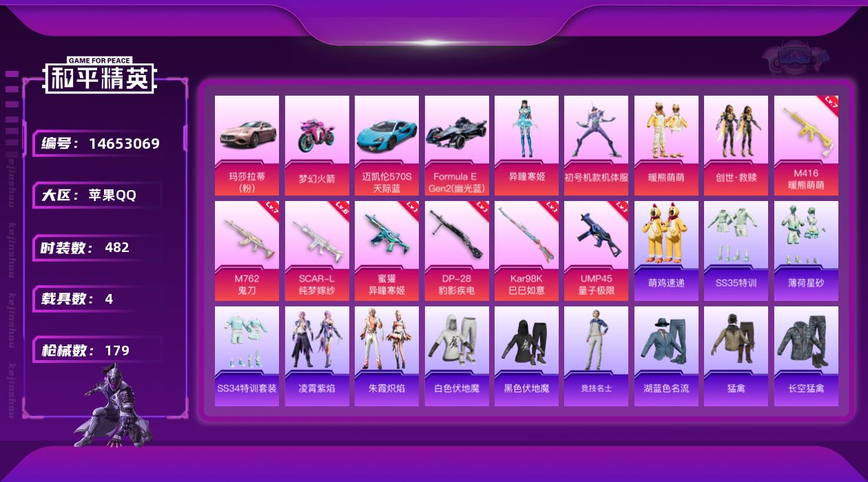4粉装 7特效枪 4载具 11印记 可二次 可修改实名 【热门装扮】:初号机款机体服(紫螳螂),异