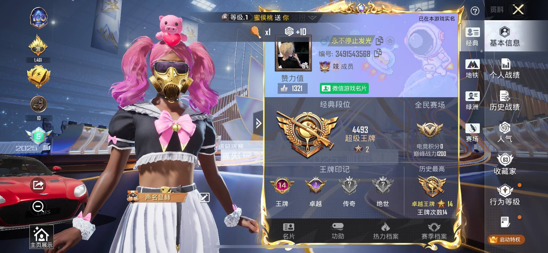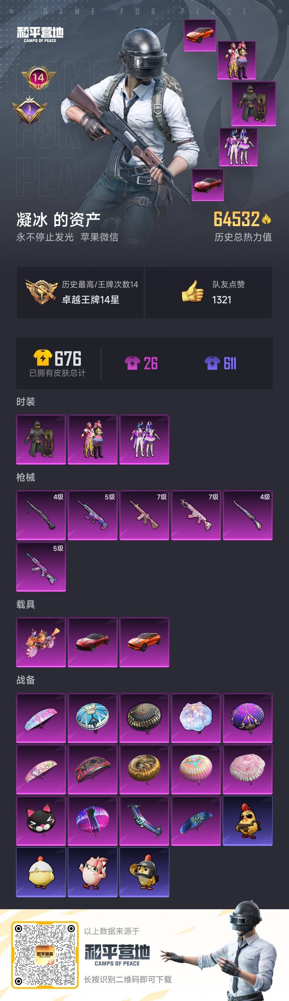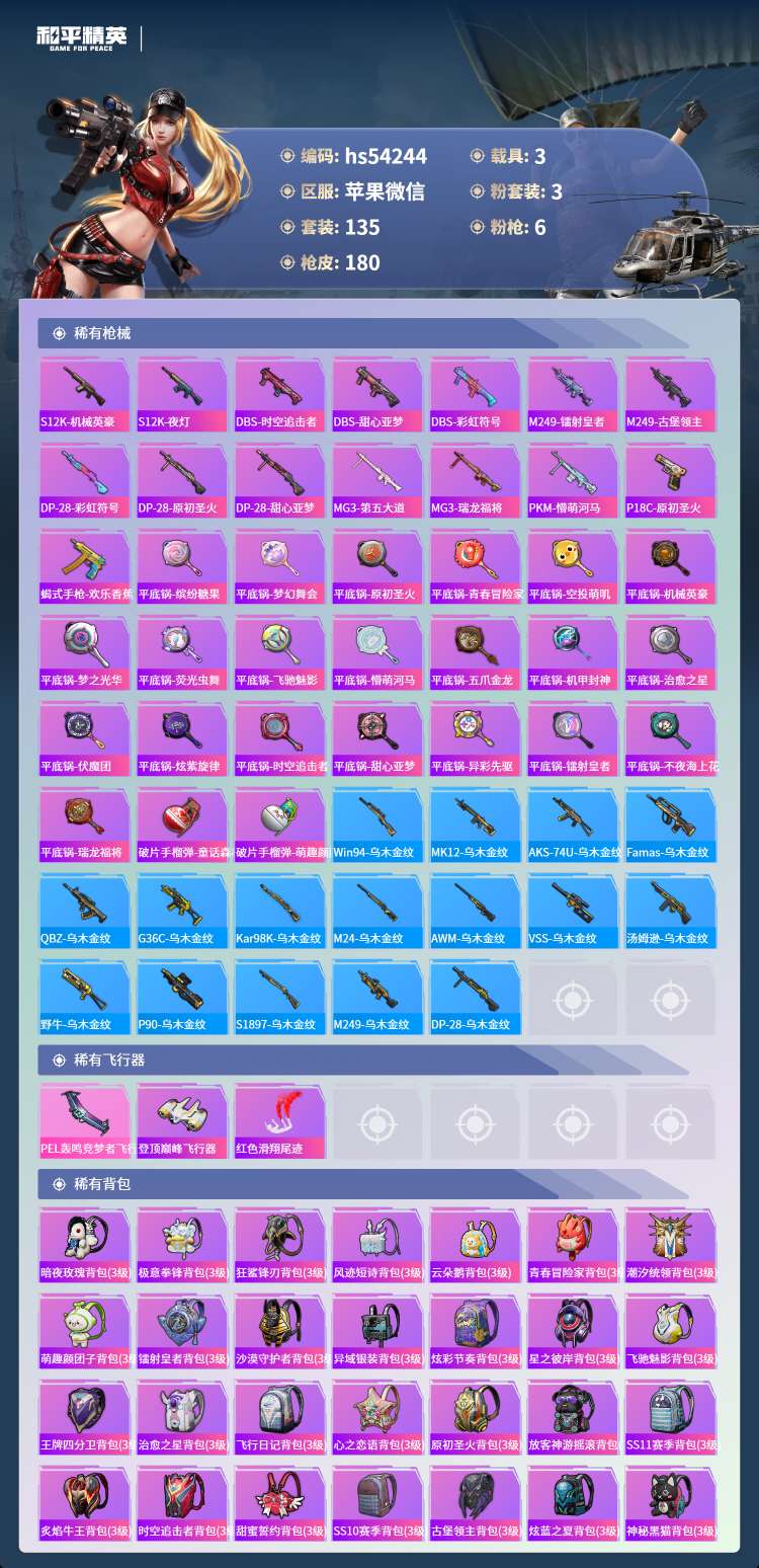 hs54244 苹果微-14王牌印记-3粉装-6特效枪-3载具-64532热力值-135套装-18