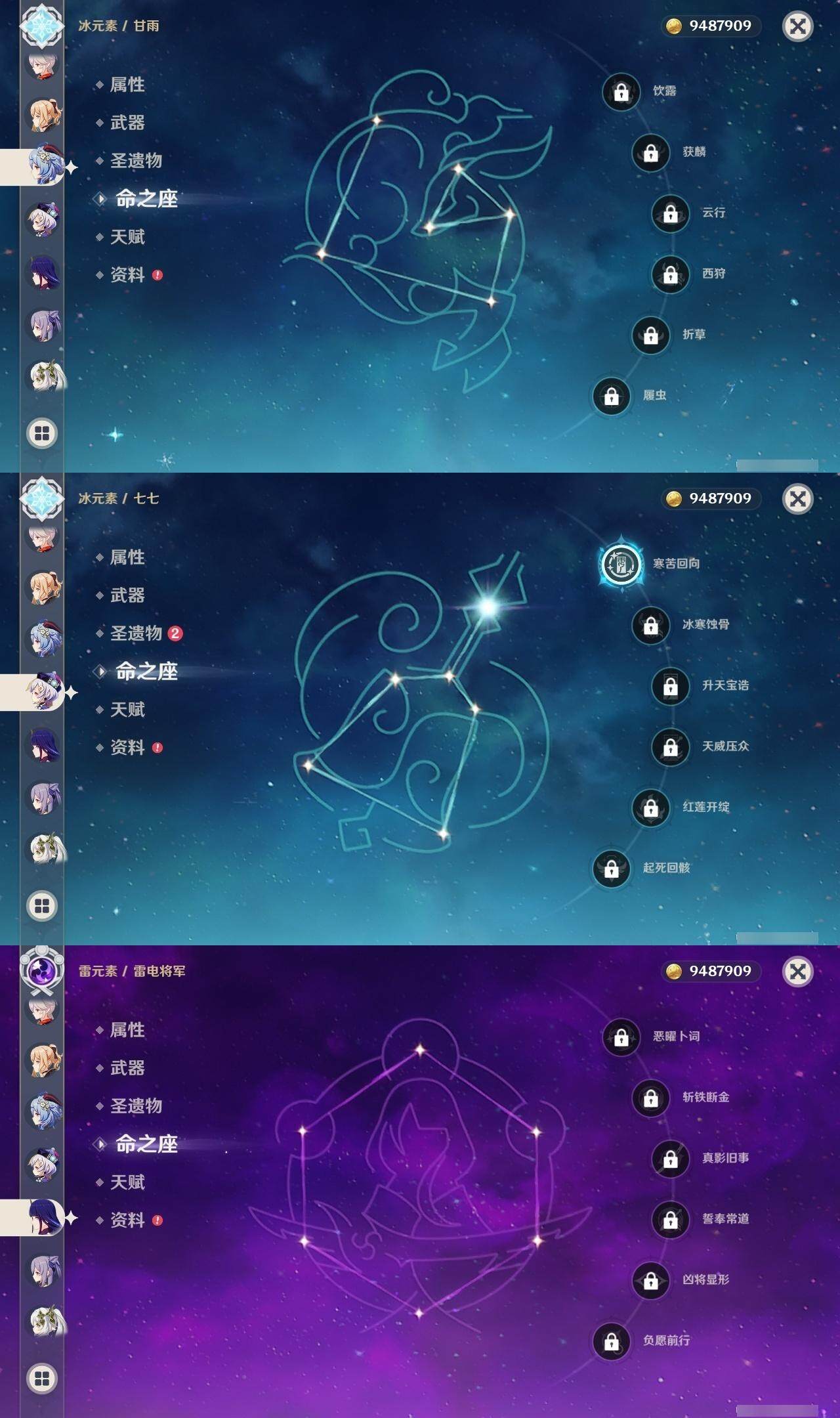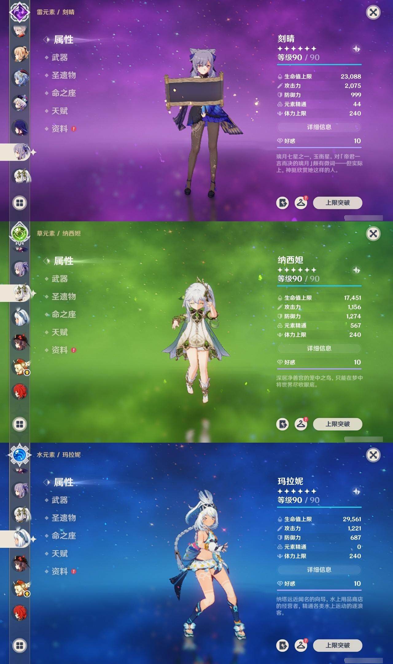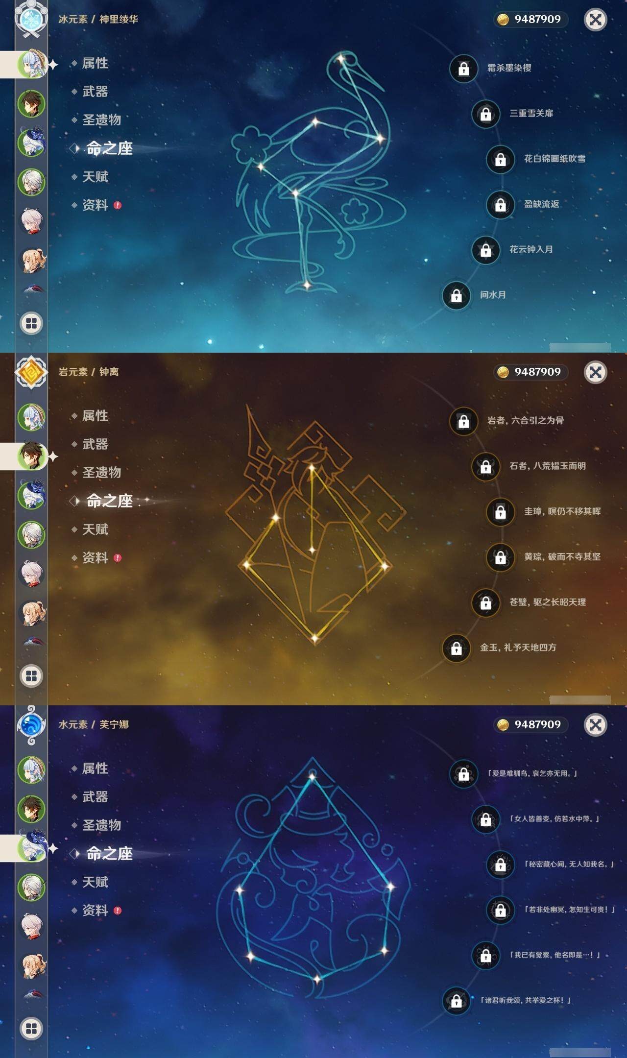 0命阿蕾奇诺,0命芙宁娜,0命迪希雅,0命纳西妲,1命提纳里,0命雷电将军,0命枫原万叶,0命神里绫华,0命钟离,0命胡桃,0命甘雨,0命可莉,0命刻晴,1命七七,1命琴,0命莫娜,2命迪卢克,0命玛拉妮,0命梦见月瑞希,精1裁断,精1静水流涌之辉,精1雾切之回光,精1护摩之杖,精2四风原典,精1和璞鸢,精1天空之刃,精1岩峰巡歌,精1山王长