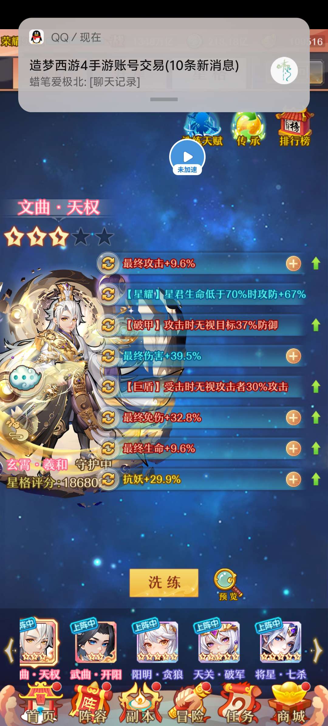 马上出神符4,一星杨戬,一星法宝资源多多嘎嘎,潜力不想玩了,心态崩了可置换,可补
