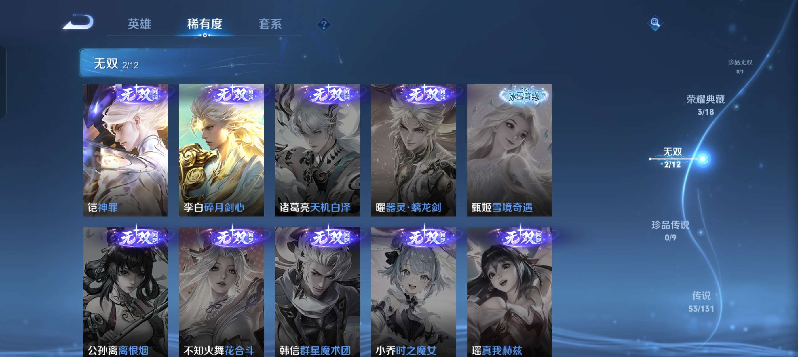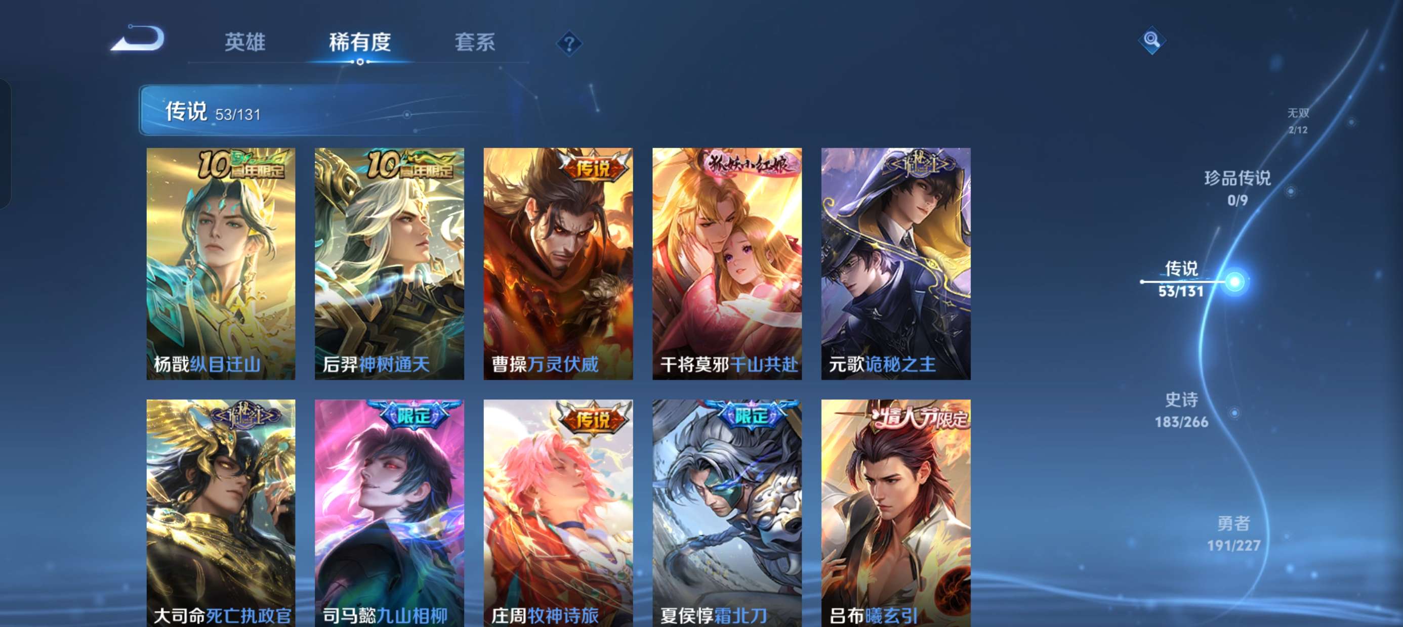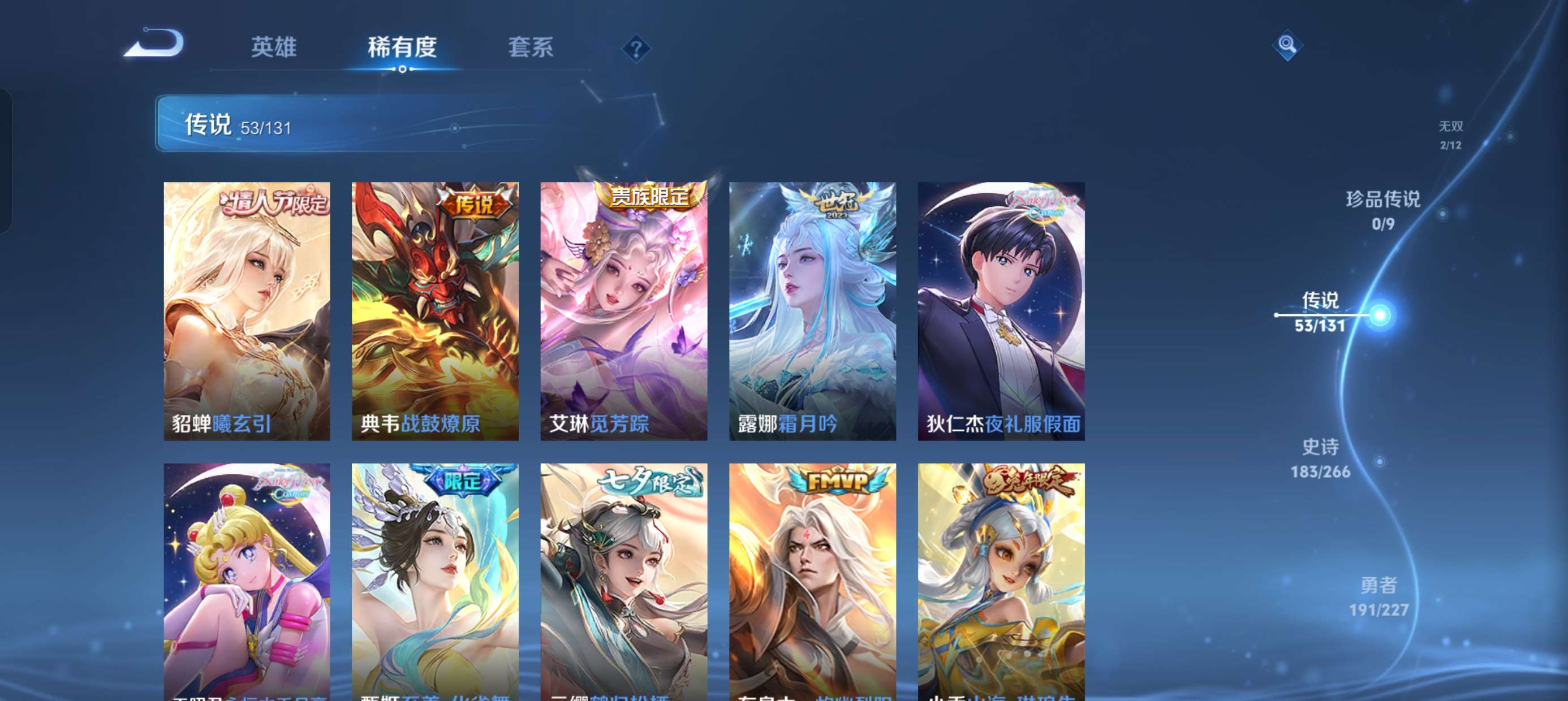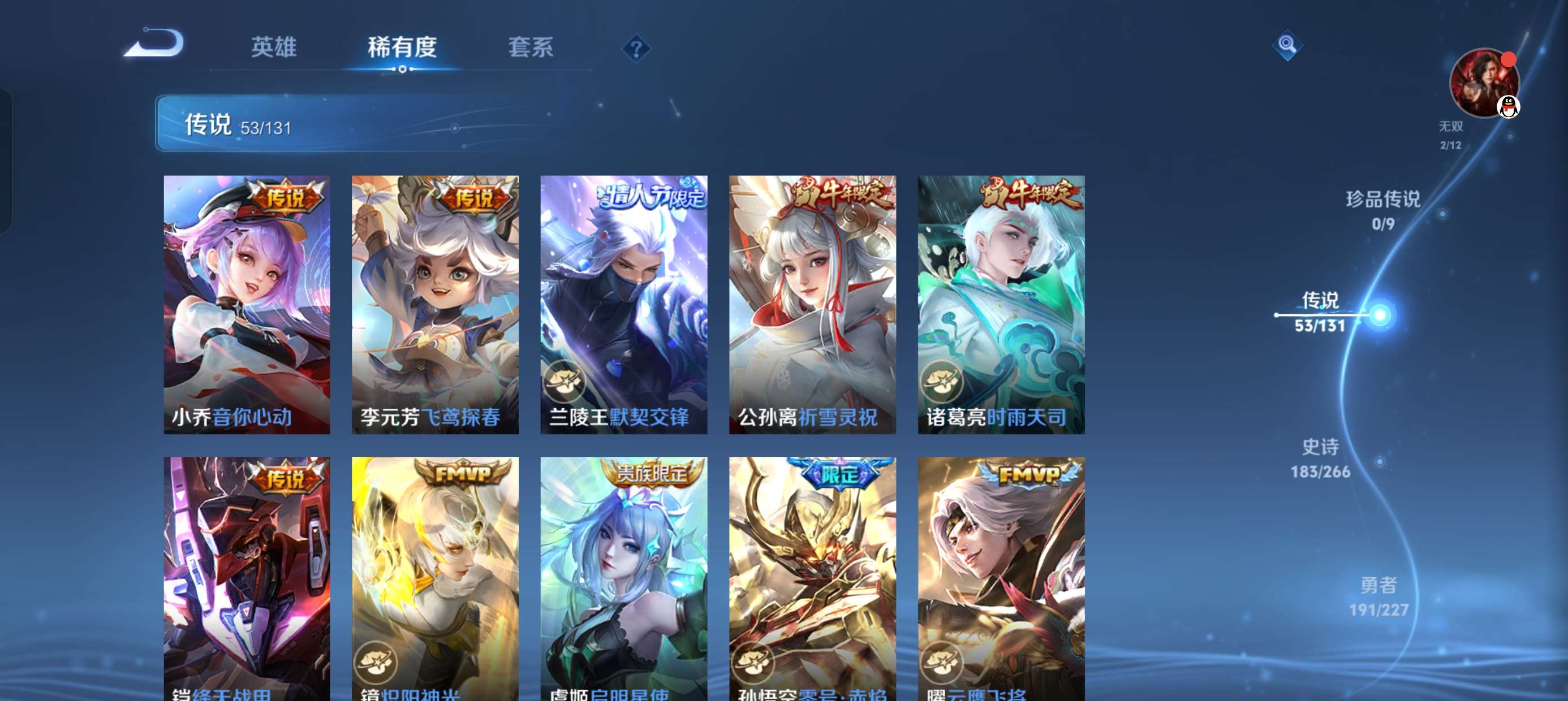 安卓微信-4典藏-53传说-2无双-515皮肤-127英雄-无双王者-v10账号皮肤多多了