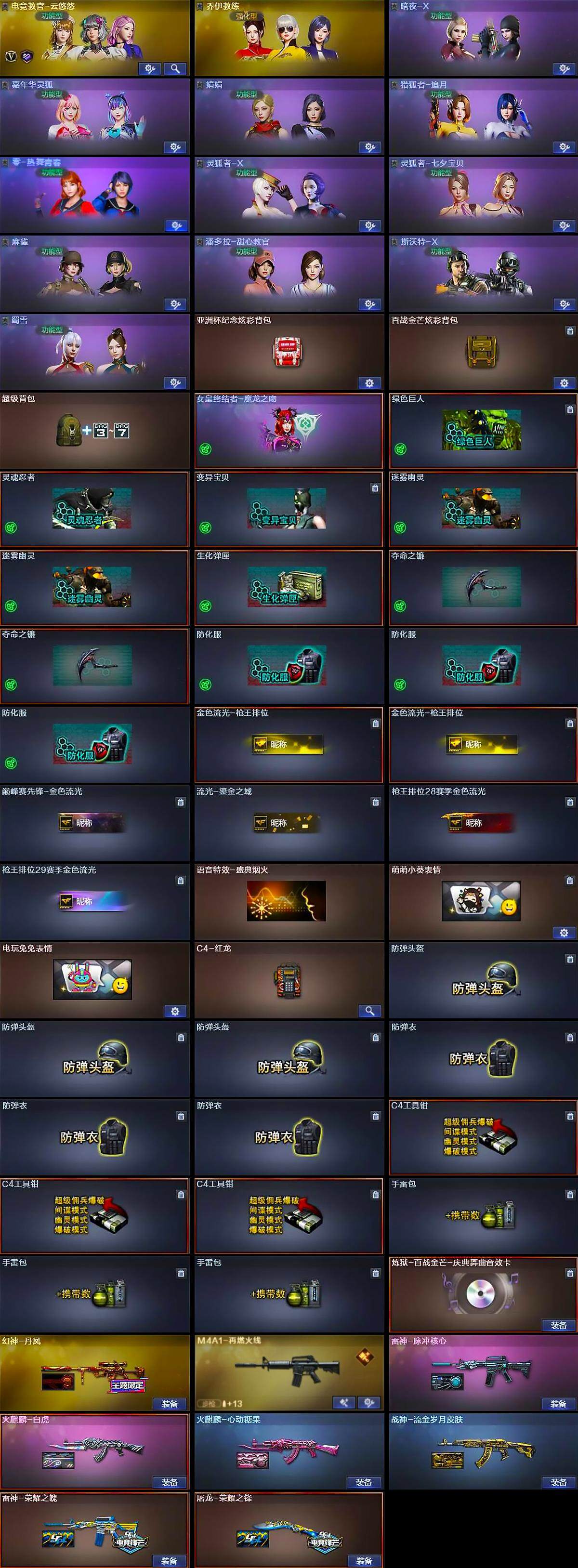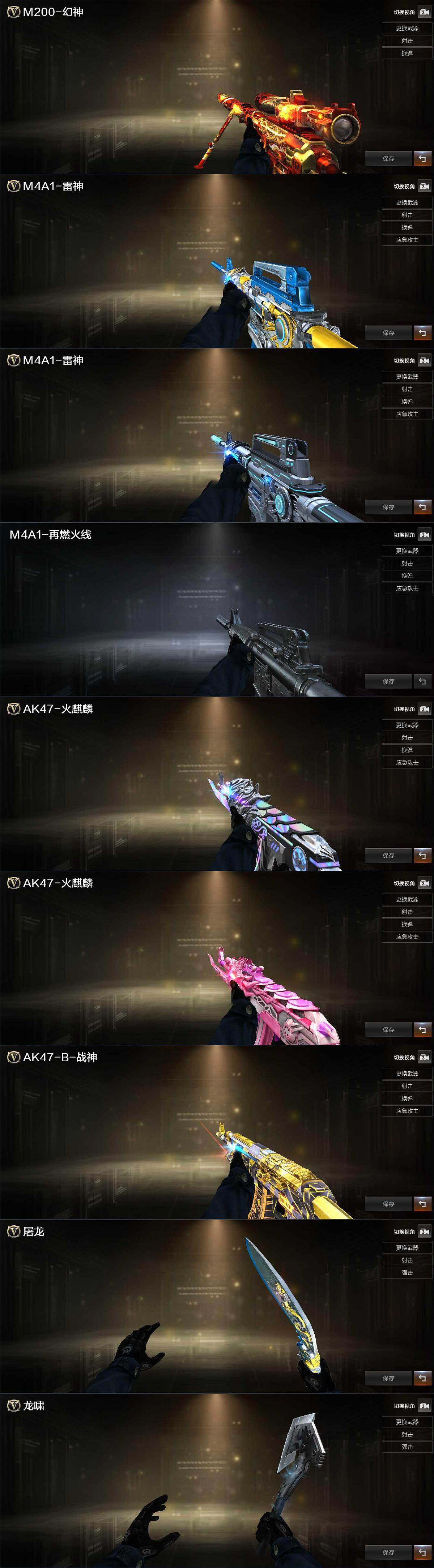 【皮肤】:幻神-丹凤,金色蔷薇-电竞之星 皮肤,雷神-荣耀之魄,雷神-脉冲核心,M4A1-再燃火线,火麒麟-白虎,火