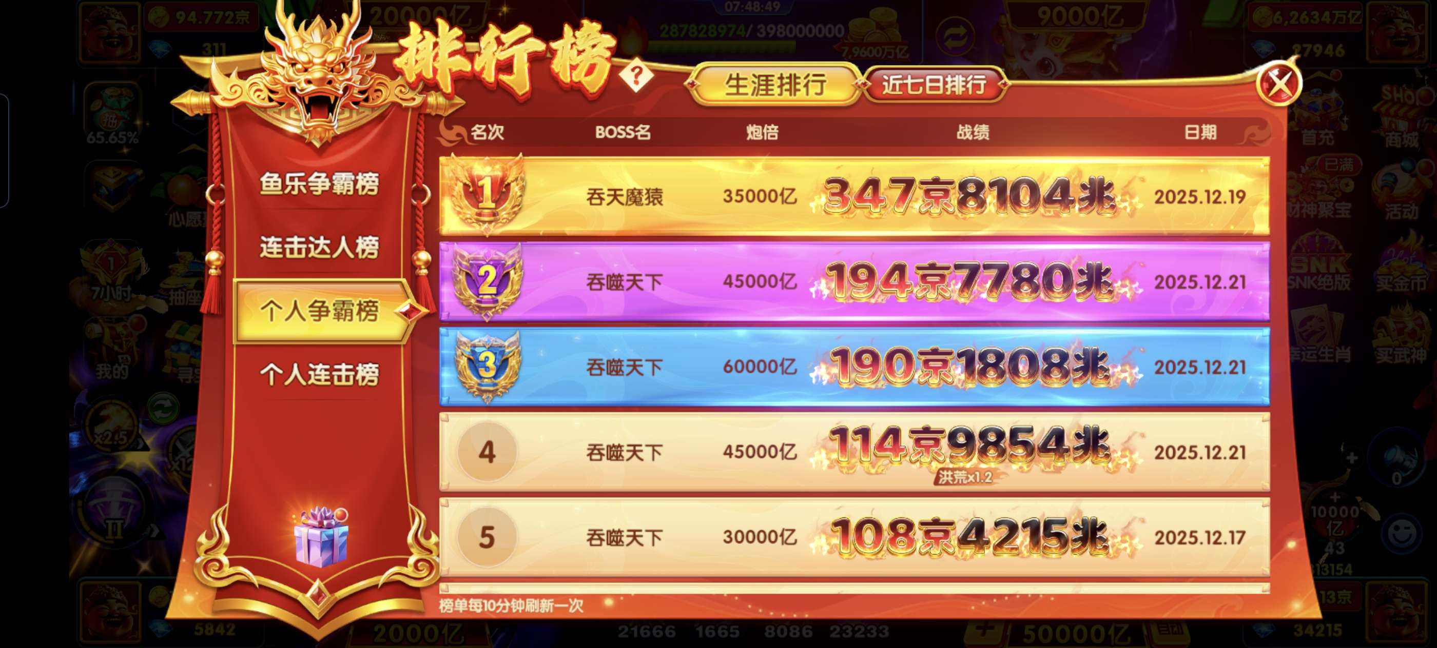 爆发号一天能下十几条吞魔袁