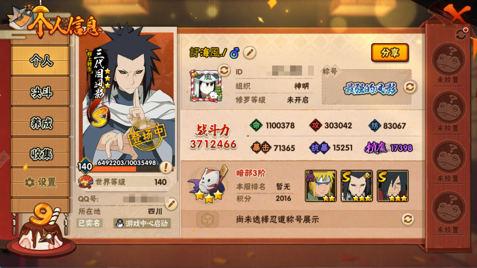 三代风加夏日烟火幕布!371W战力 三代风 解斑6S+198直购恶灵飞段 青水13A