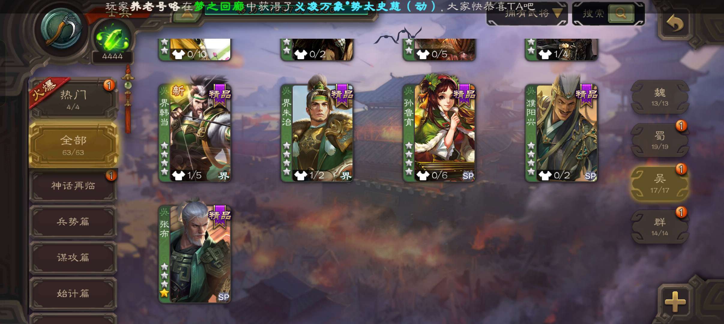 63将超级兵,37宝珠8万羽毛4400魂170招募令,曹婴界黄忠双史诗,甘夫人势陈到,7万豆