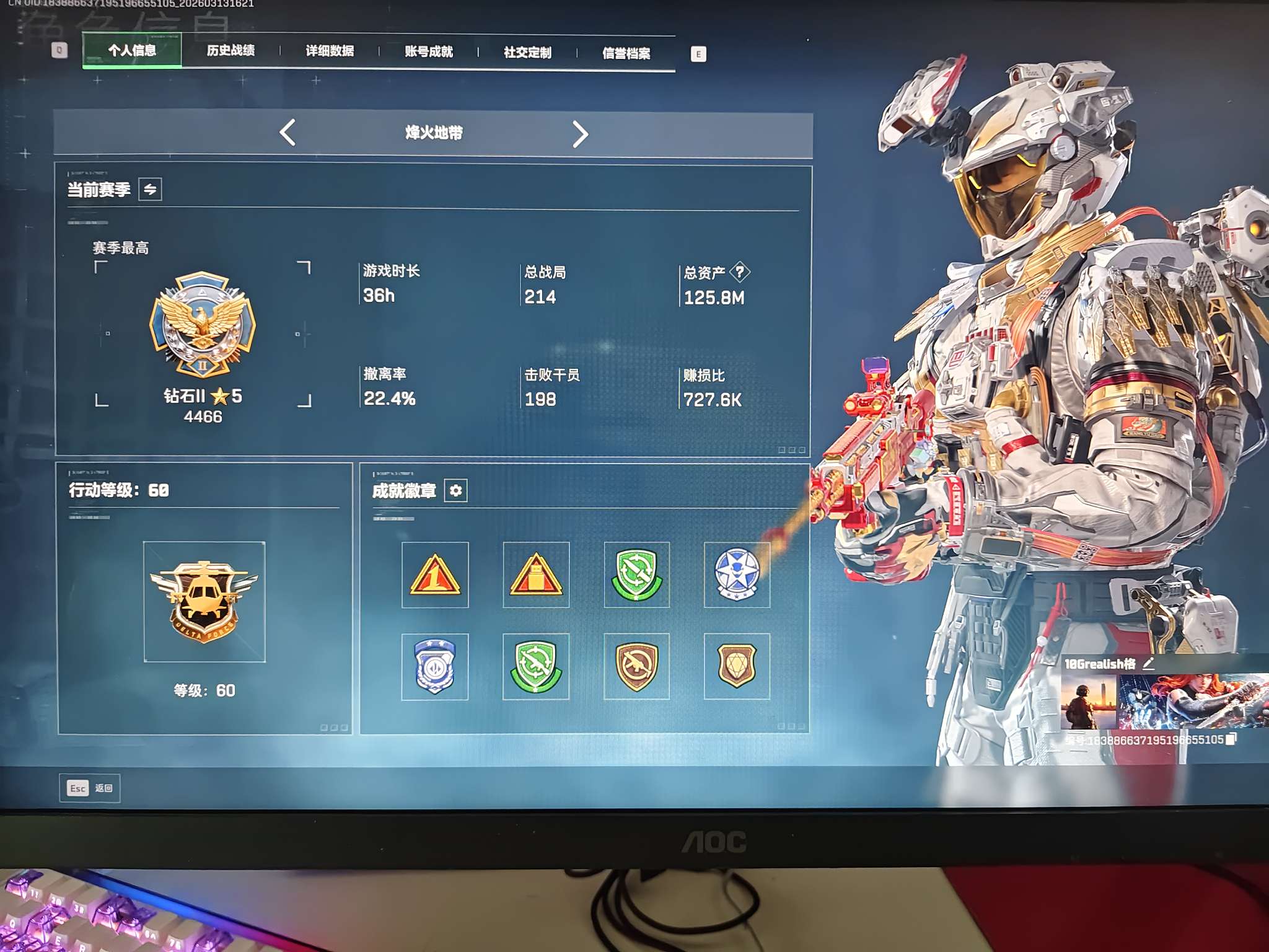 hssjz639 总资产129.97M,哈夫币 3547.72K,战场等级:50 尉官,行动等级:6