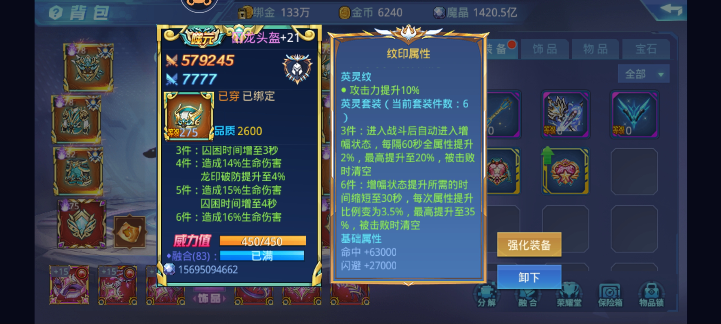 安卓当乐混2冠军区续充5折随便换绑版本,1600万全角色机甲高力雷神号,VIP31级,噬元六件套(纹章英灵6件套),徽章圣裂穹,唤魂双星有红武开了主动还有双卡,背包称号多多,还有30个羽毛1,1400亿魔晶,6000多金币,别的基础都挺不错的,