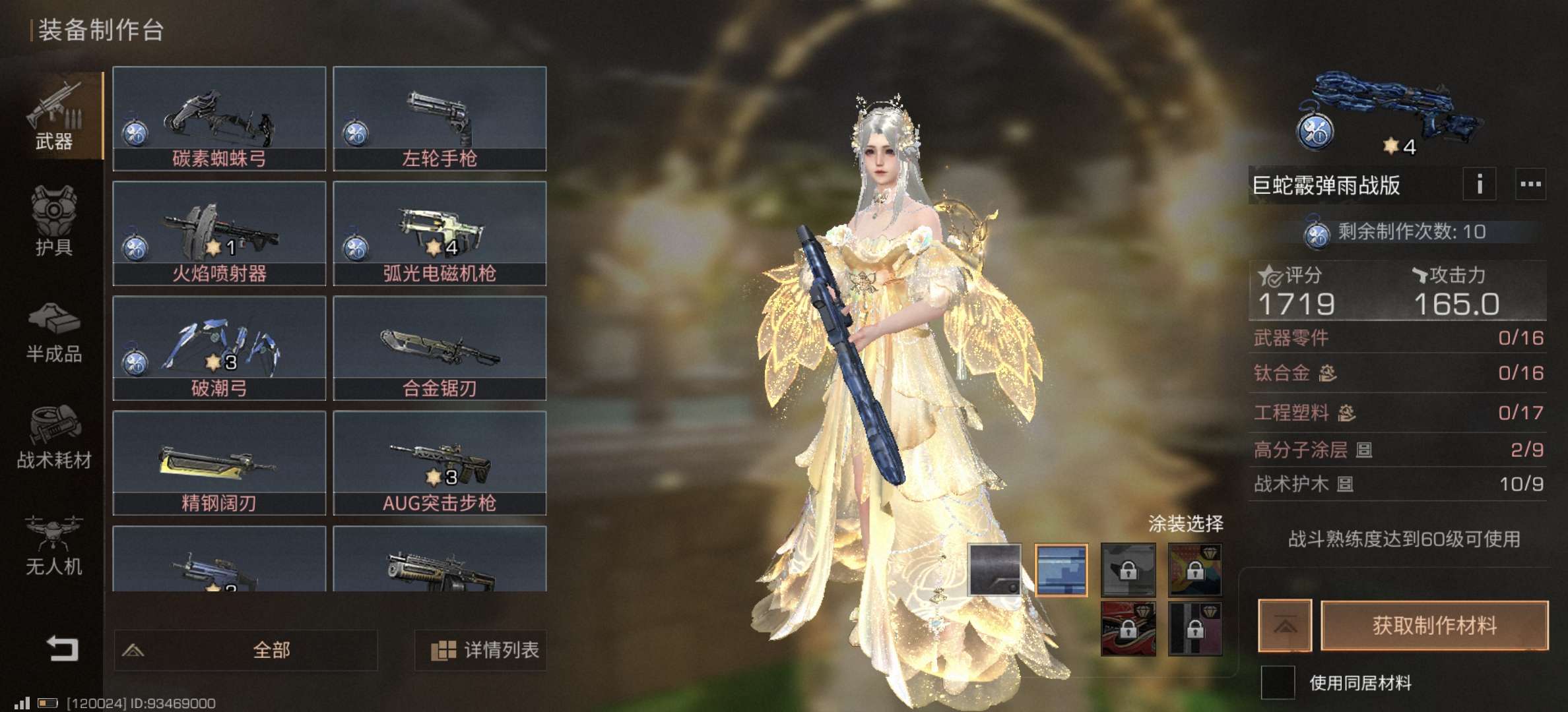 两套典藏时装飞行载具,配方齐全专精高,金刀金甲金枪,一堆金核心,腰带够用,还有一些物资,城堡房