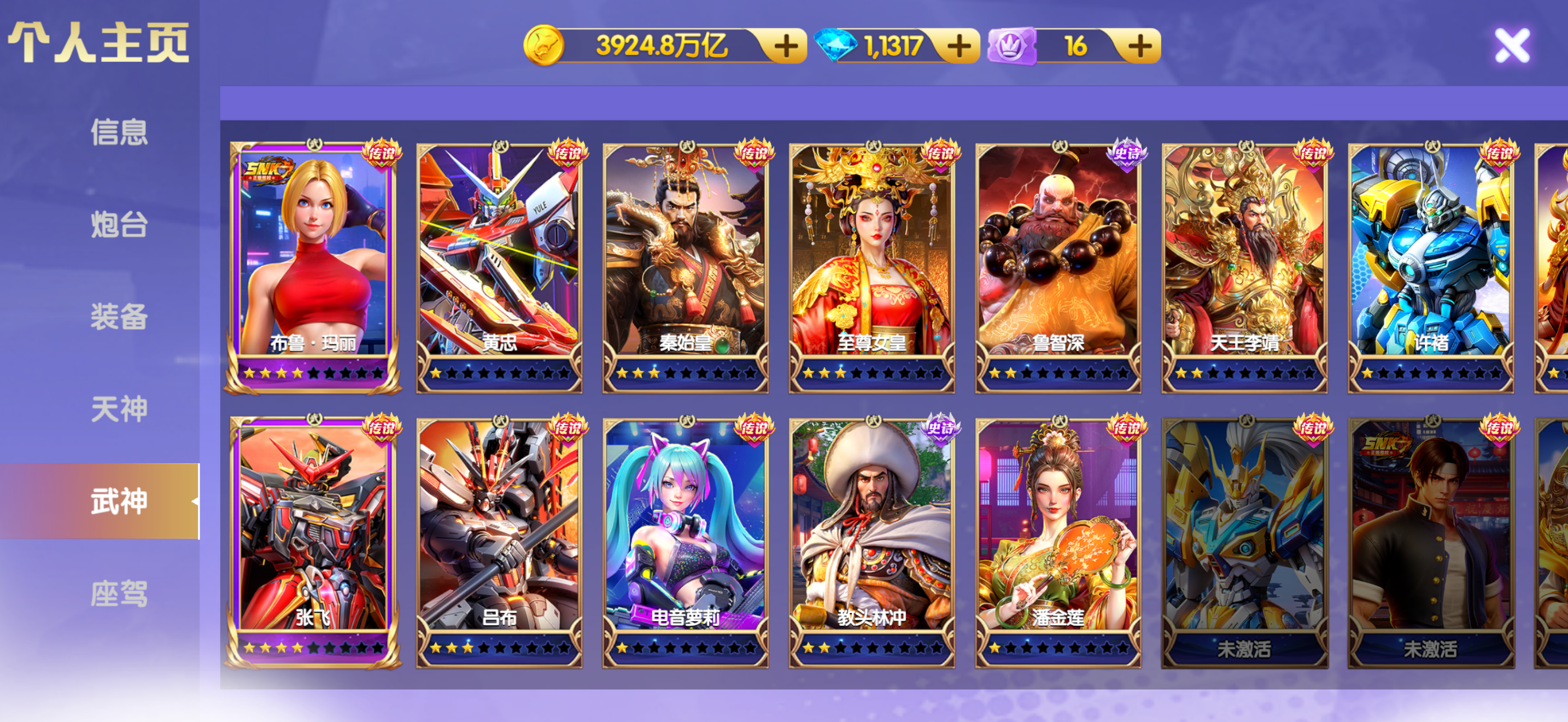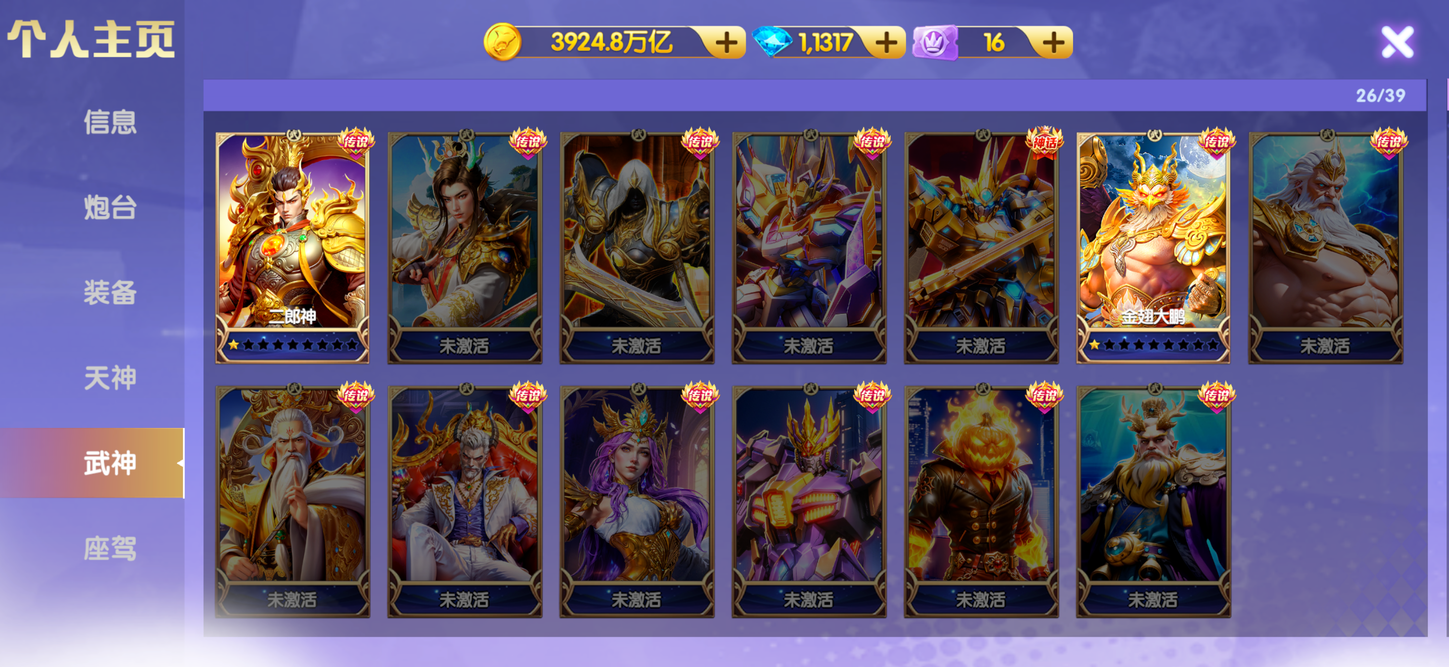 官方手机号 可换绑 高配V13极品号3600连击 3125加成 神装,天神基本全满,武神羁绊有几套