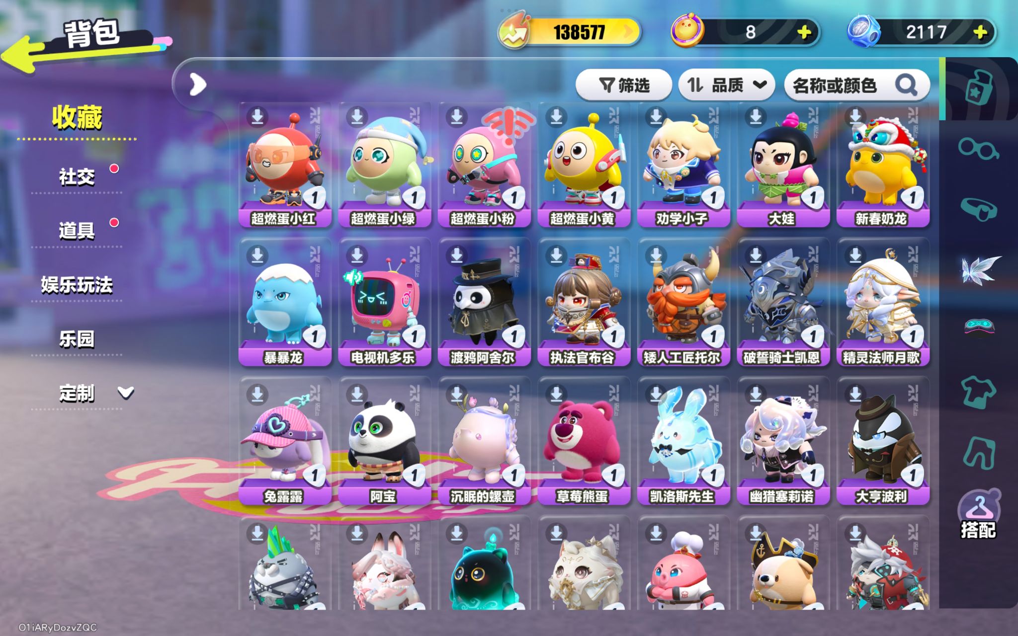 双面教师林野,饶舌小子,淘气妹妹,元气丸子,暴龙化石斯坦,莓莓DongDong,冷面千金竹月,海盐布丁嘟嘟,柠檬汽水啵啵,甜甜圈诺奇,海绵宝宝蛋,木偶鸭松果,控球手迅风,布偶米米,超燃蛋小红,超燃蛋小绿,超燃蛋小粉,超燃蛋小黄,劝学小子,大娃,新春奶龙,暴暴龙,电视机多乐,渡鸦阿舍尔,执法官布谷,矮人工匠托尔