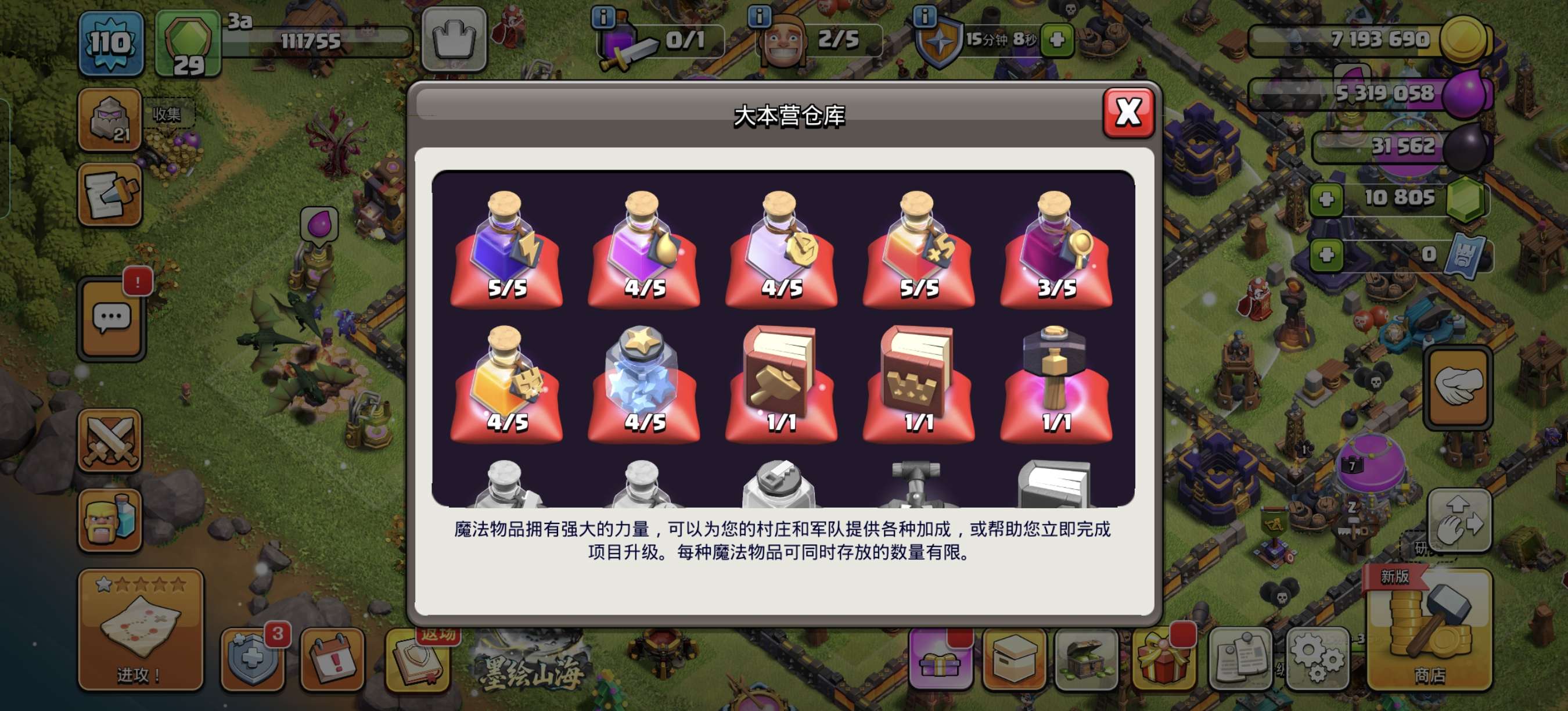 部落冲突国服安卓QQ,16本,宝石12000+,5农