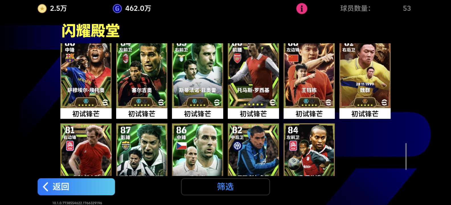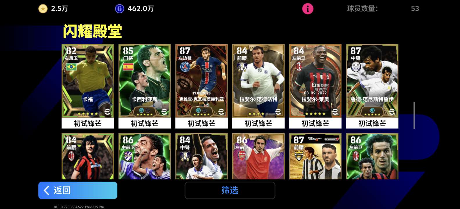 3204能力值贱卖 刚充2个648号中还有2.5w金币 黄传鲁美 绝版姆巴佩 账号资源多 永久卡
