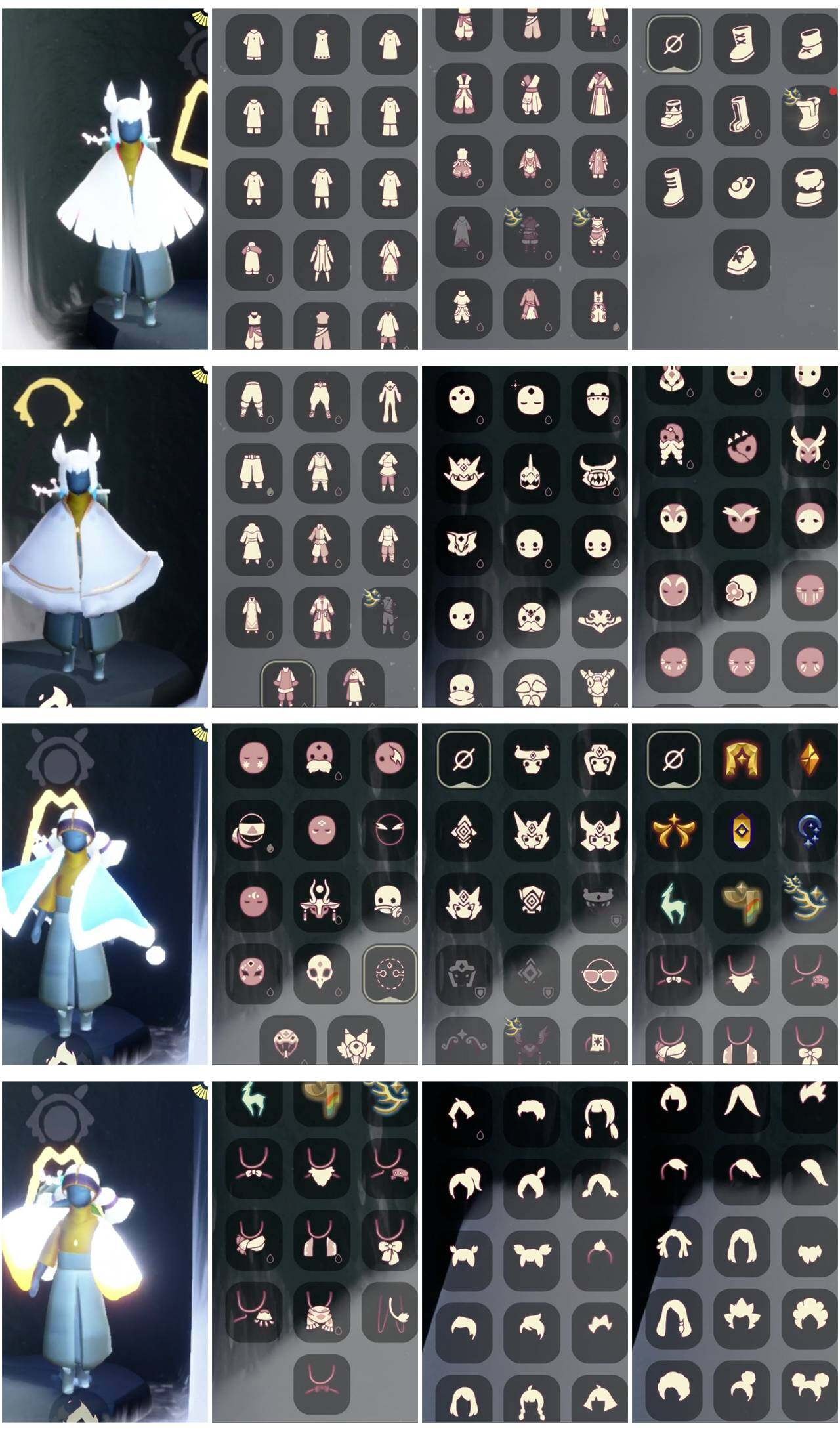 稀有礼包:兔年套装 龙鳞束身 彩虹耳机 圣诞鹿角 九色鹿鹿角 欧若拉之翼 莲花斗篷 白雪斗篷