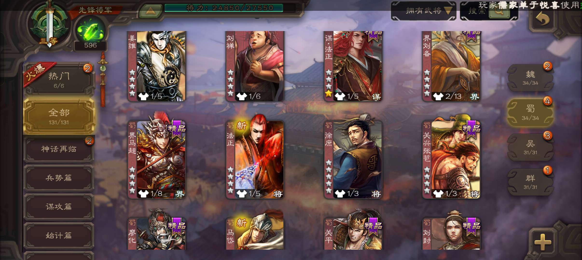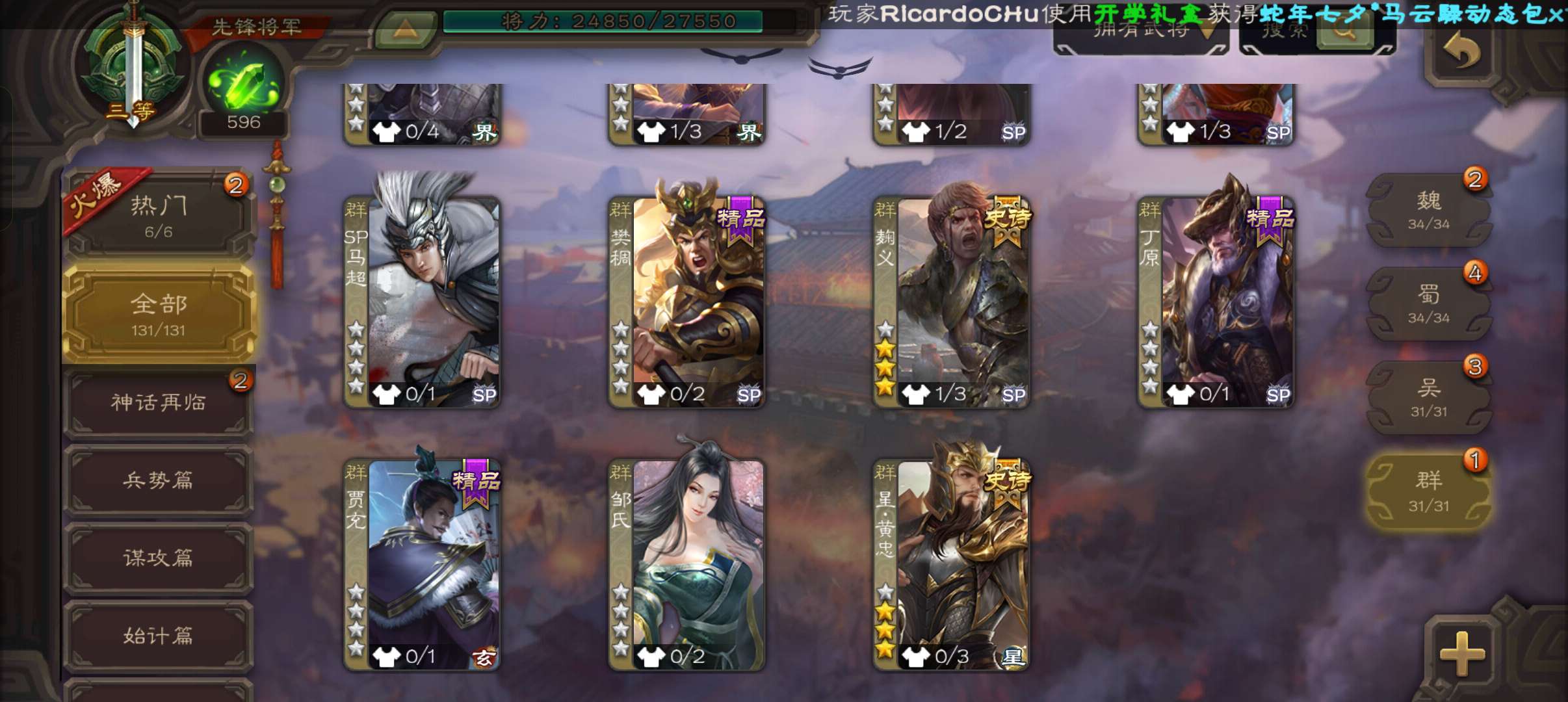 先锋将军,4万豆,天工谋法正,回廊动白马神吕布星黄忠3史诗,界满宠关银屏界全琮张布131将