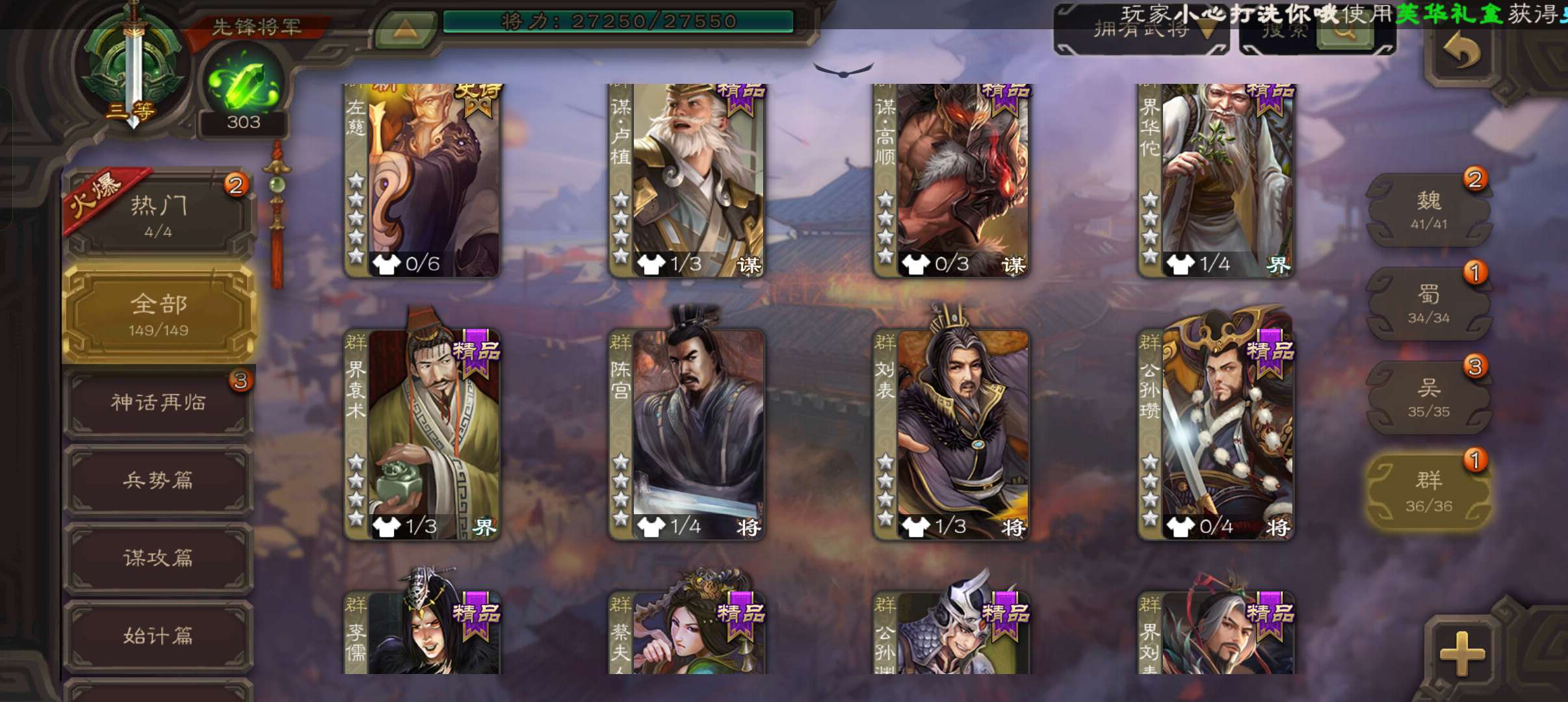 5史诗先锋,8.7万羽毛7.9万豆,神赵云界钟会神吕布赵襄左慈,神吕蒙动曹冲谋卢植谋高顺谋韩当霍峻