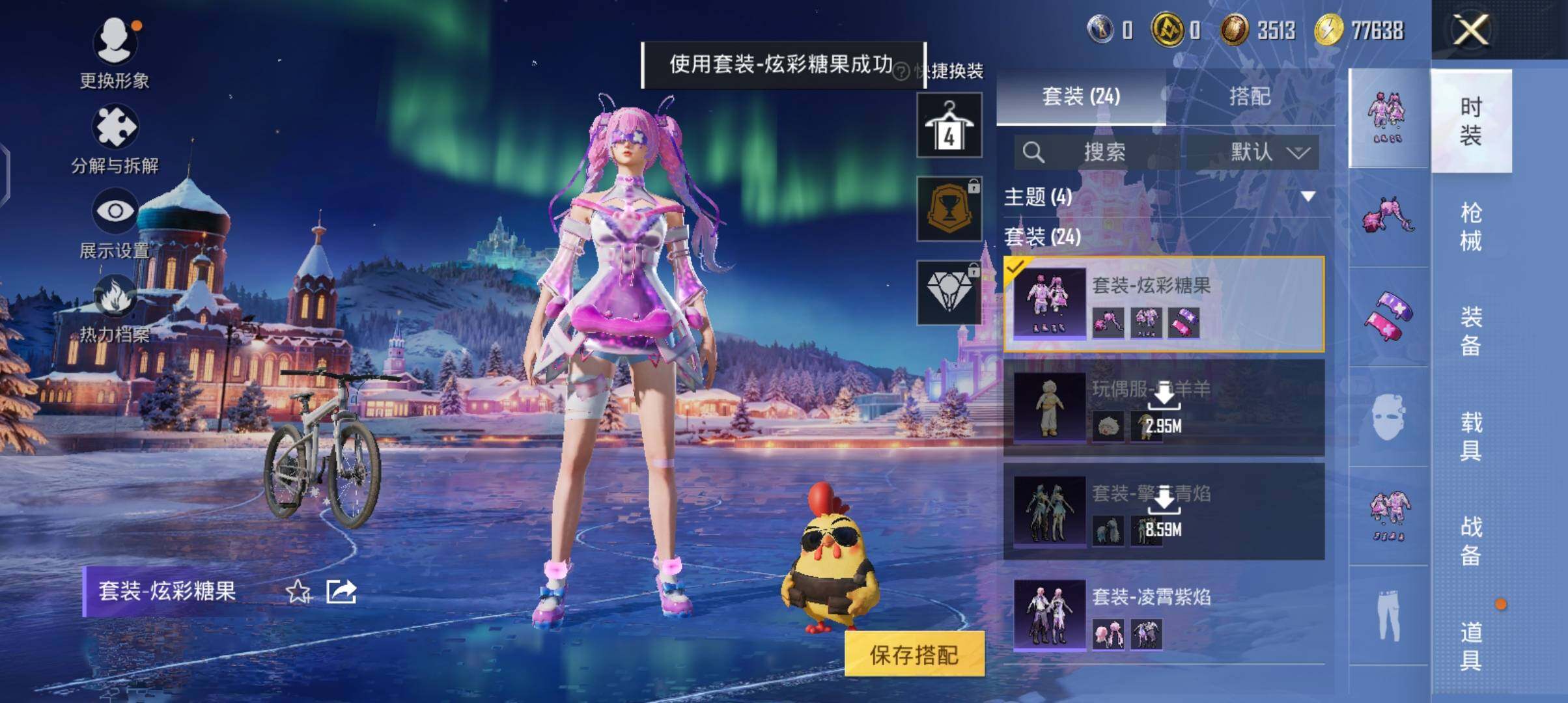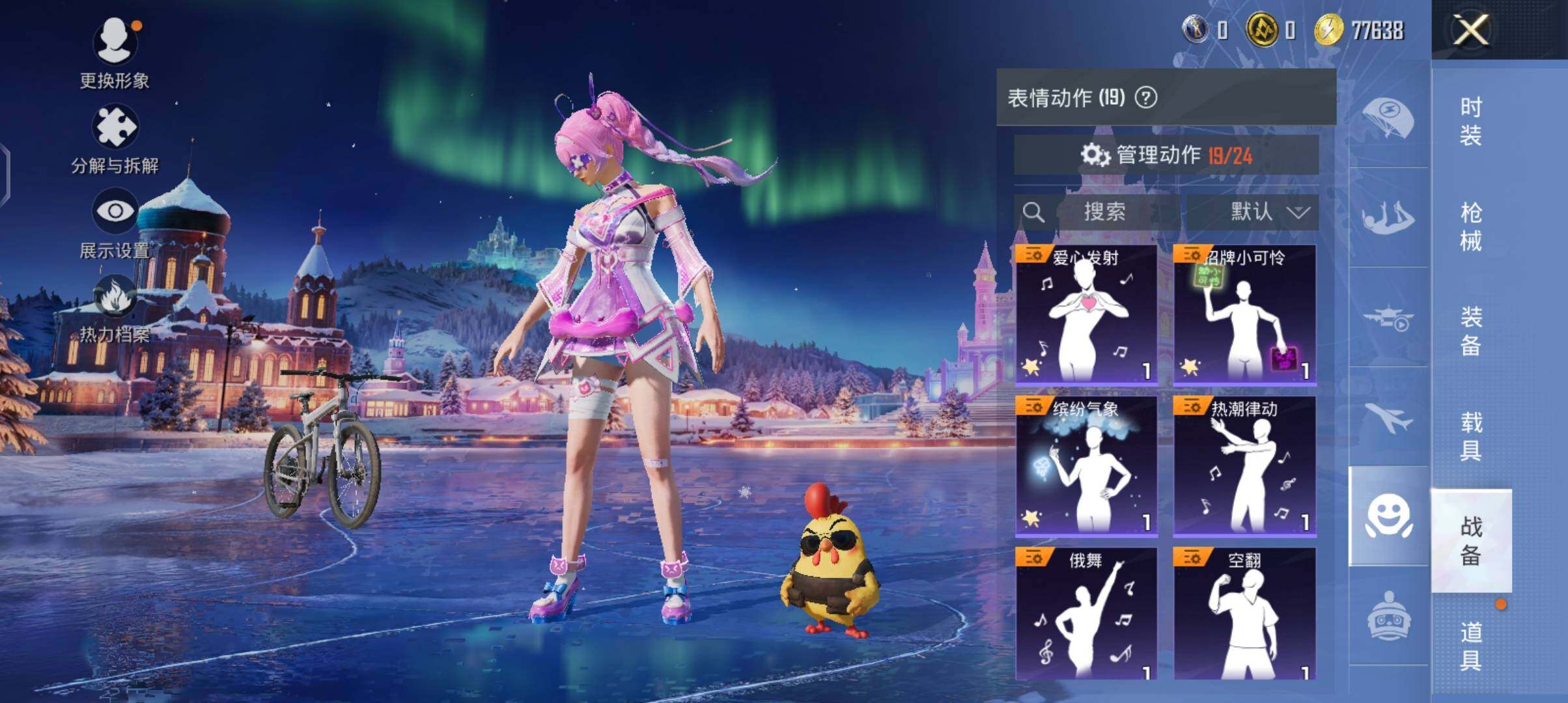 0粉装-1特效枪-0载具-1粉色飞行器-8300热力值-2王牌印记-24套装-33枪皮