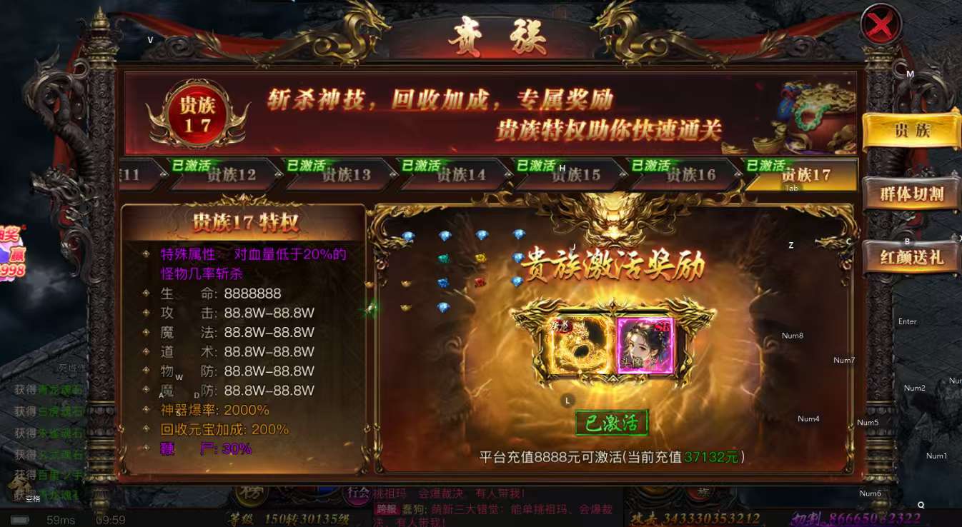 屠龙兵甲,1星敖丙,7星神戒,中秋套,充值3.7个