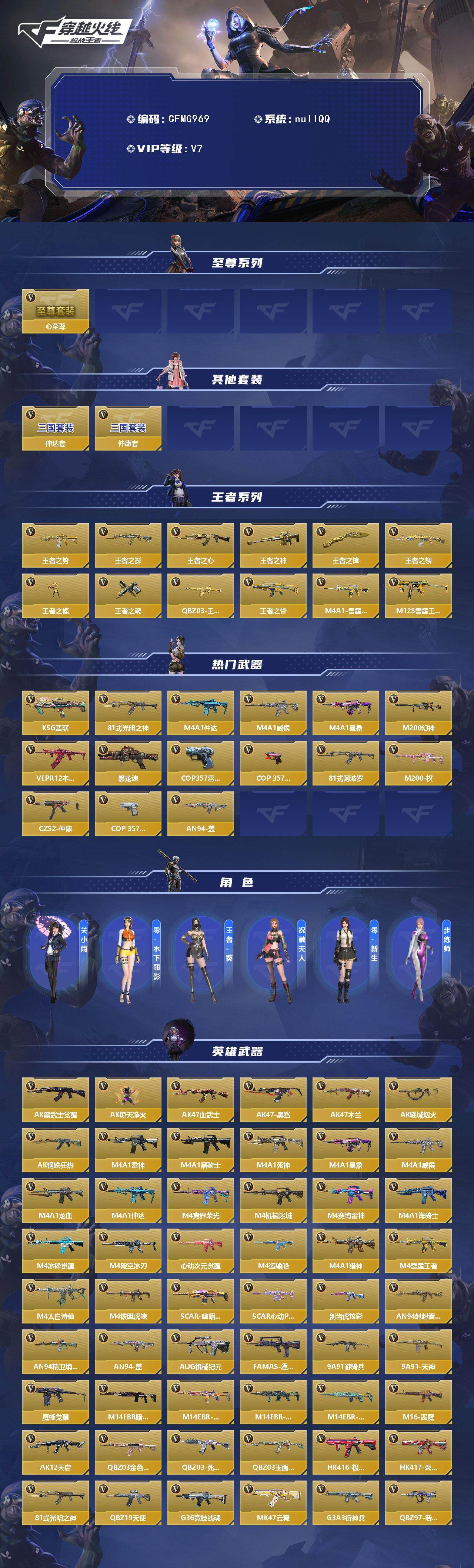 【CFMG969】VIP7/267V/心至尊/仲达套/仲康套/王者之势/王者之影/王者之心/王者之神/王者之锋/王者之翎/王者之蝶/王者之魂/QBZ03-王者蔷薇/王者之誉/M4A1-雷霆王者/M12S-雷霆王者/KSG-孟获/81式-光明之神/M4A1-仲达/M4A1-威侯/M4A1-星象/M200-幻神/VEPR12-本初/黑龙魂/COP 357-雷霆/COP 357-堕天神/81式-阿波罗/M200-权/CZS2-仲康/COP 357-安琪拉/AN94-盖/关小雨/零水下丽影/王者-葵/祝