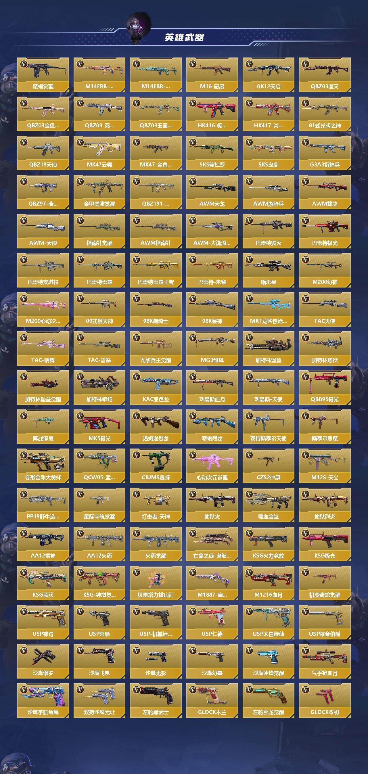 【QZX2019】VIP8/427V/王者之刺/王者之势/王者之力/王者之影/王者之怒/王者之心/王者之神/王者之锋/王者之迹/王者之翎/王者之蝶/王者之兽/王者之狱/王者之魂/王者之电/王者之业/巴雷特-雷霆王者/M12S-雷霆王者/KSG-孟获/M4A1-九尾狐/81式-光明之神/M4A1-七色宝葫/SCAR-文远/M4A1-仲达/M4A1-星象/M4A1-游骑兵/M200-幻神/AWM-游骑兵/COP 357-雷霆/81式-阿波罗/COP 357-A/CZS2-仲康/AN94-盖/审判者/