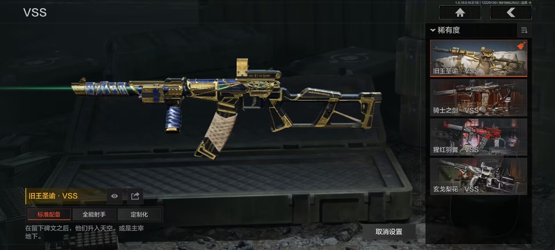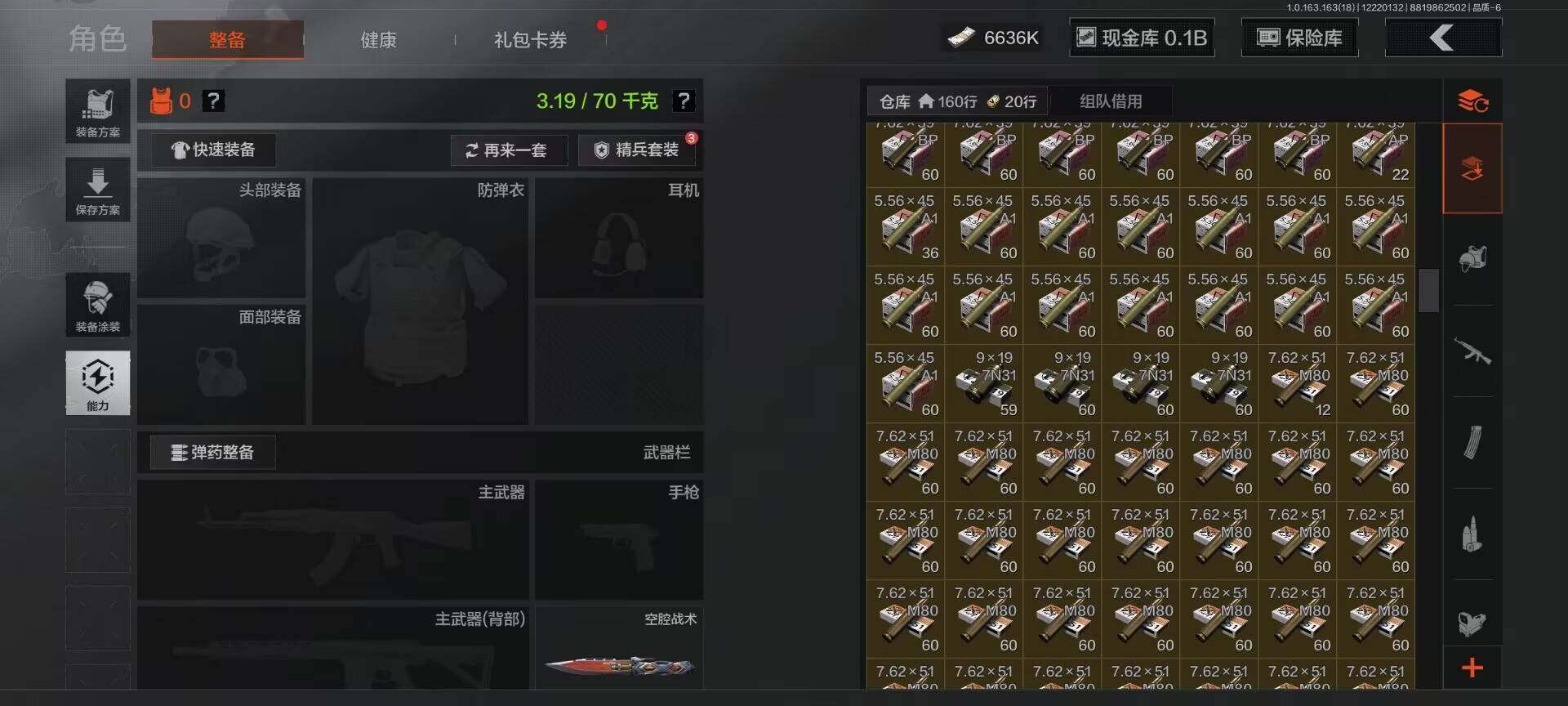 【AQQH112】段位:暗区传说/仓库价值(百万):182/空腔战术/野战折刀/脉冲马克西姆/告丧夜曲AUG/旧王圣谕VSS
